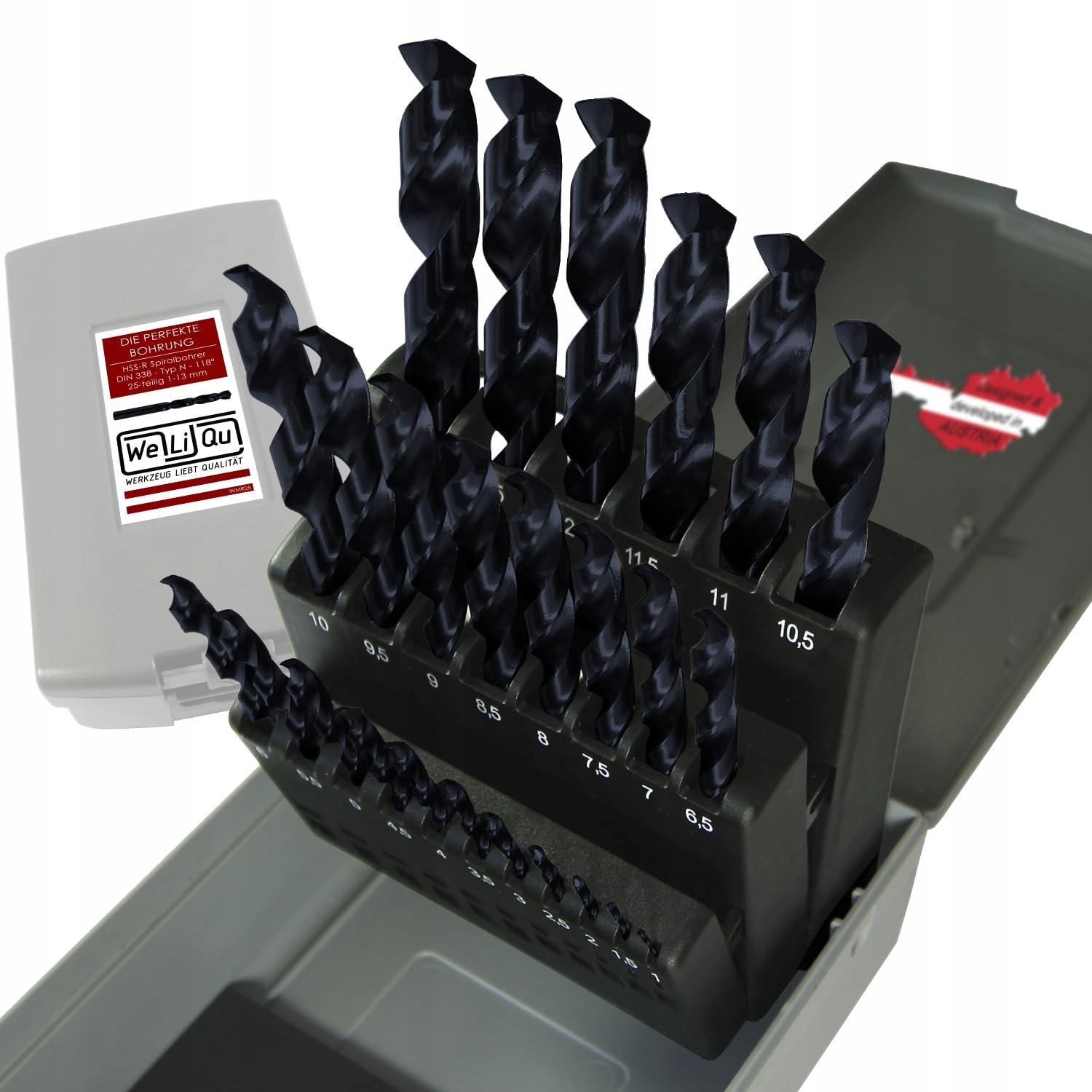 WELIQU Zestaw Wierteł HSS-R 25 Sztuk 1-13mm Do Metalu Stali Aluminium PVC