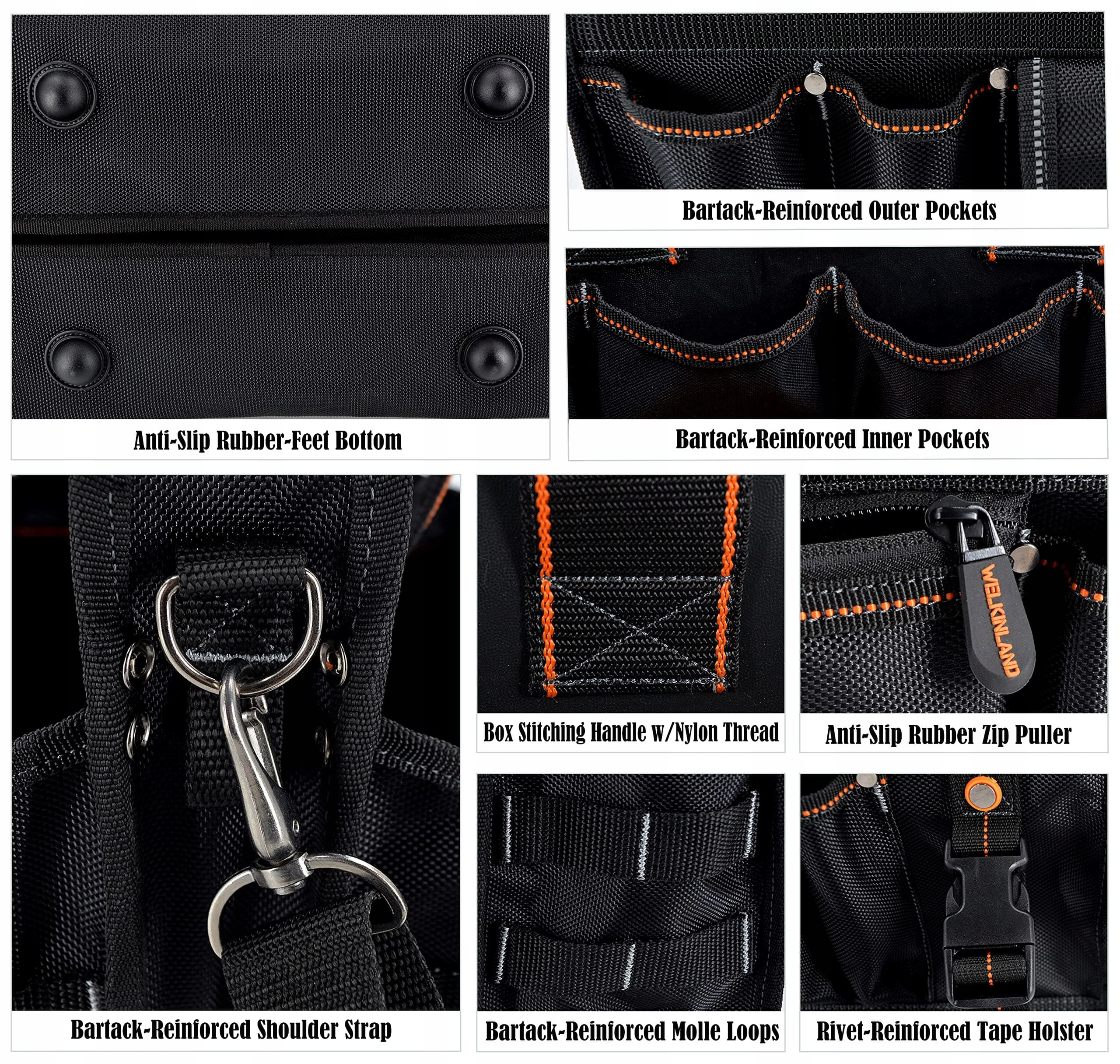 ✔️ Łatwy dostęp: Torba narzędziowa ma zarówno solidny uchwyt, jak i przegrodę, co umożliwia dostęp do narzędzi bez zginania w talii. A pomarańczowa podszewka tej torby narzędziowej również ułatwia dostęp.