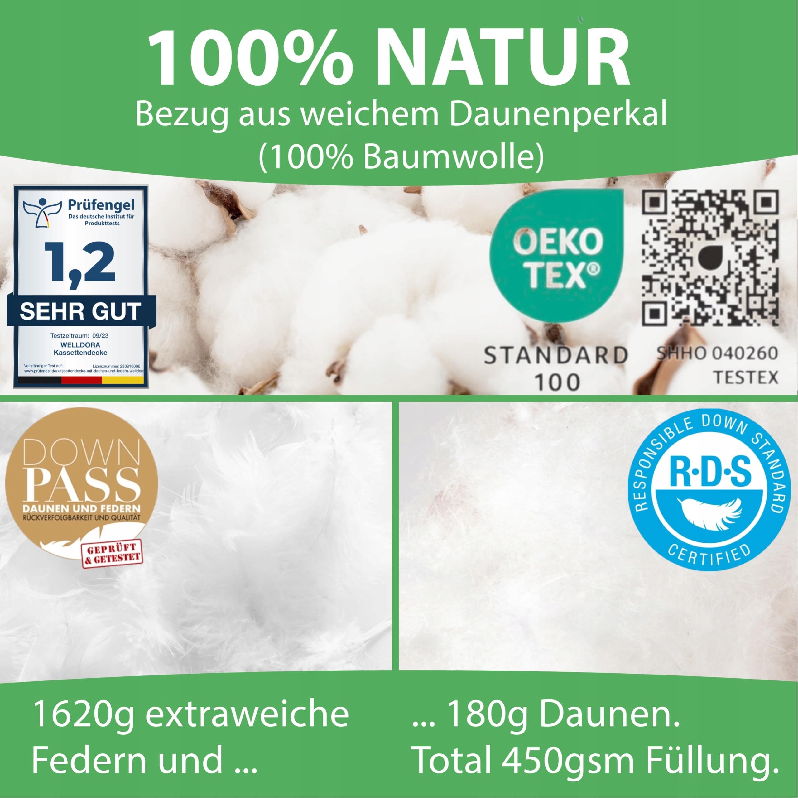 Welldora Komfort Bettdecke 200x200 | 100% Ekstramiękkie Pióra & Puch | Sprawdzona przez specjalistów, Oeko-Tex, Dla alergików | Certyfikat RDS dla dobrostanu zwierząt | Całoroczna kołdra puchowa 200x200