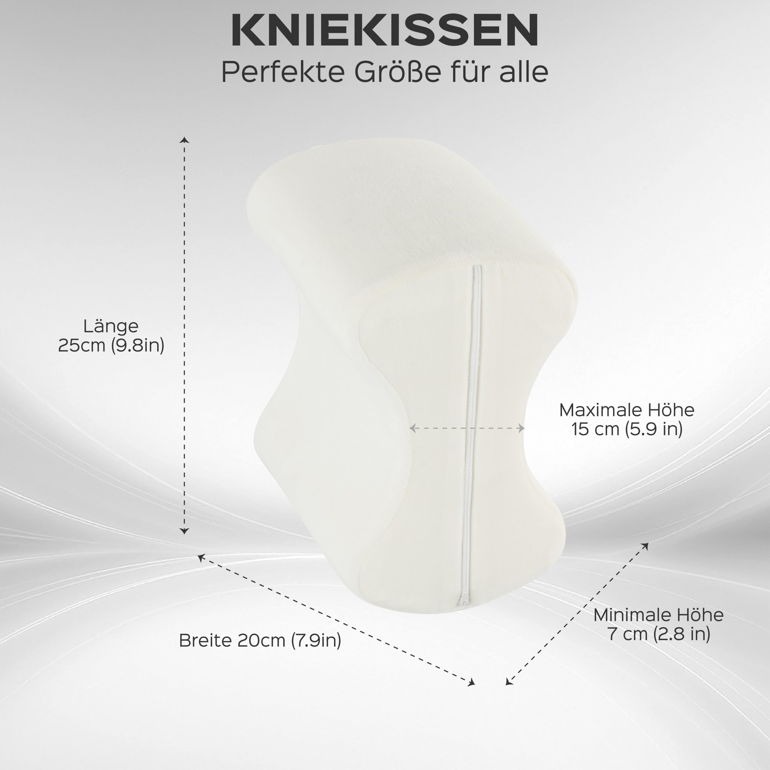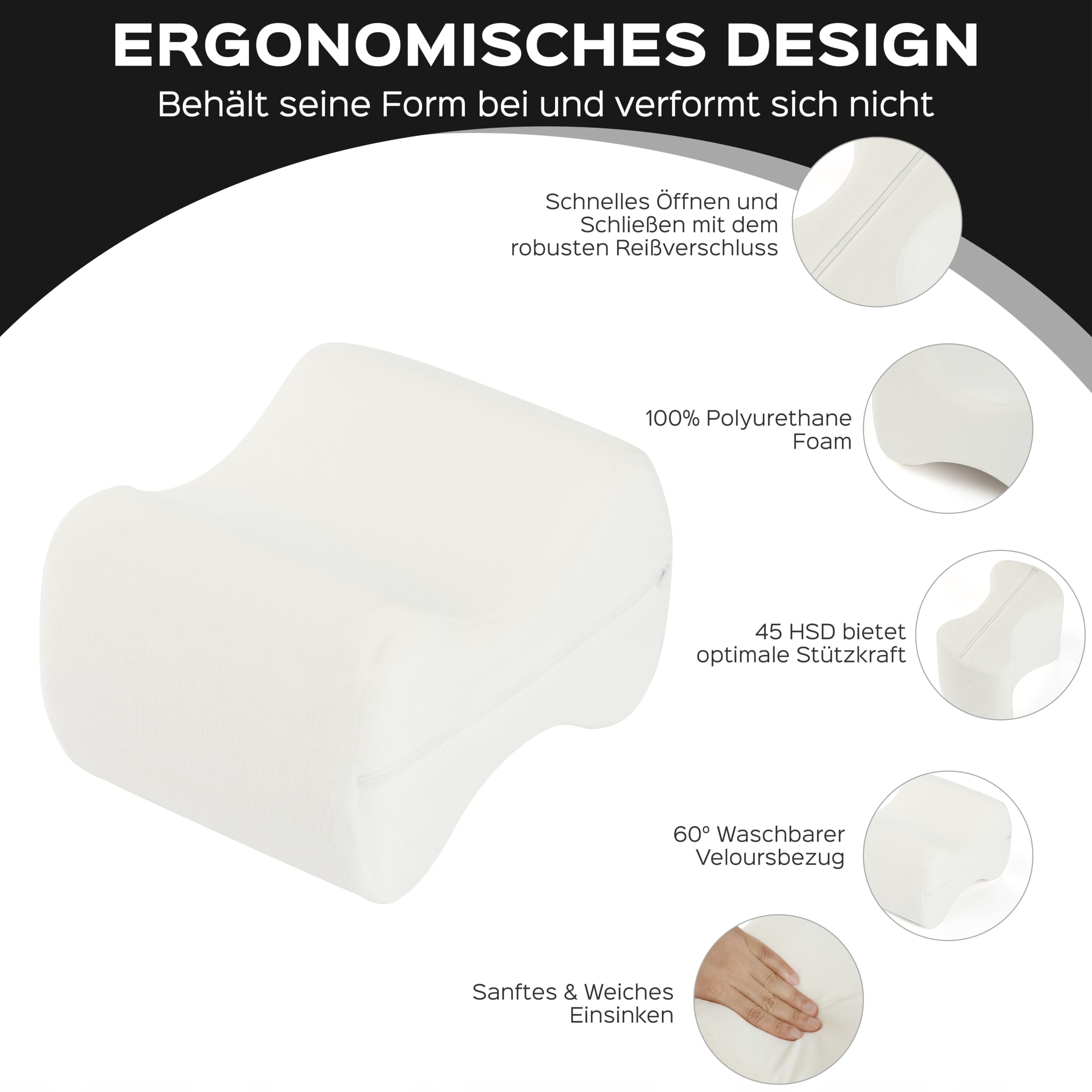 Poduszka na kolana dla śpiących na boku - ortopedyczna poduszka na kolana, pianka memory foam, poduszka na nogi łagodząca ból kolan, pleców i bioder, zdejmowany pokrowiec do prania - wellness biały, 20 x 25 x 15,7 cm