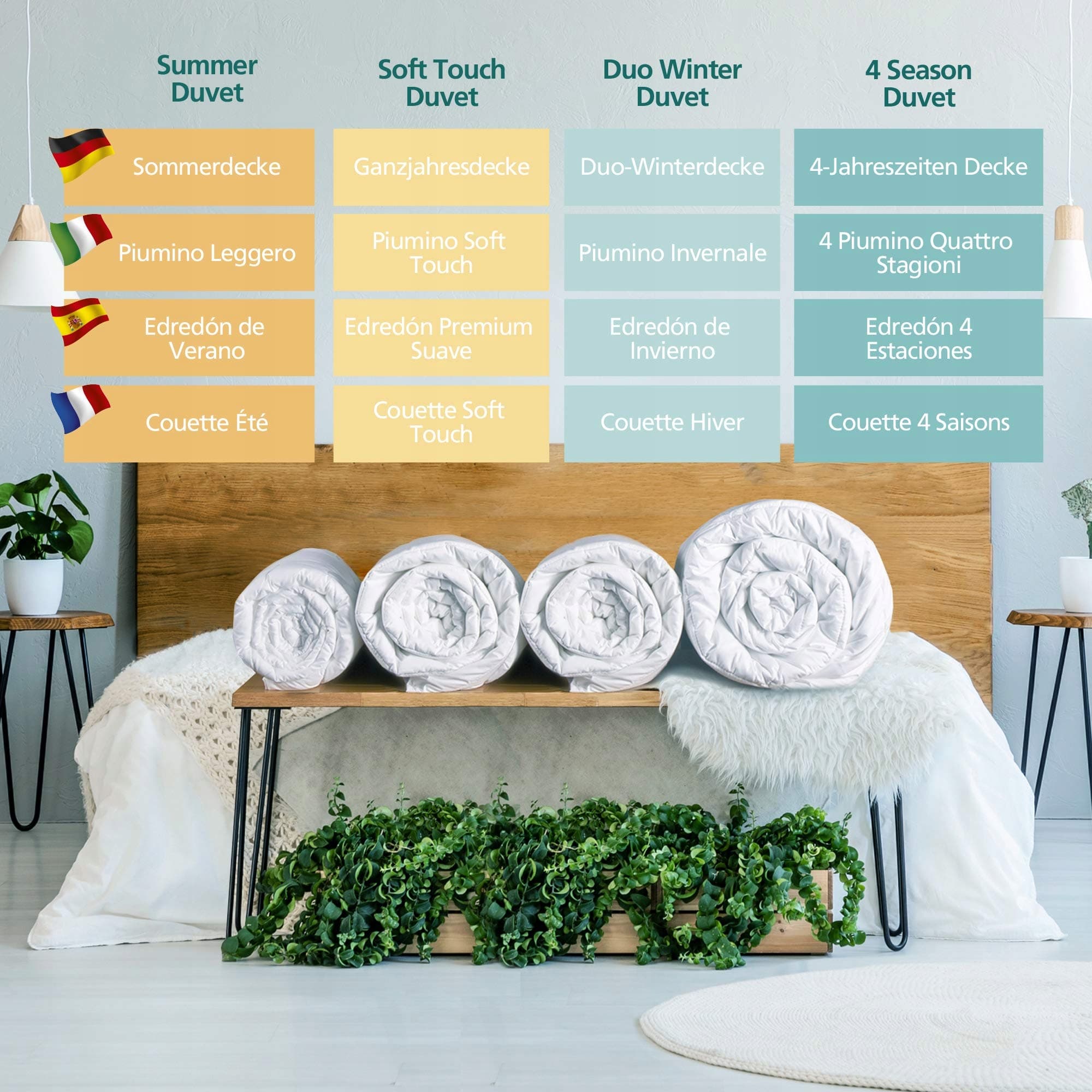 Zadowolenie – Wypróbuj 4 pory roku, które oferują Ci wielki komfort i satysfakcję. Dzięki niemu przekształcisz swoją sypialnię w najprzytulniejsze miejsce na świecie.