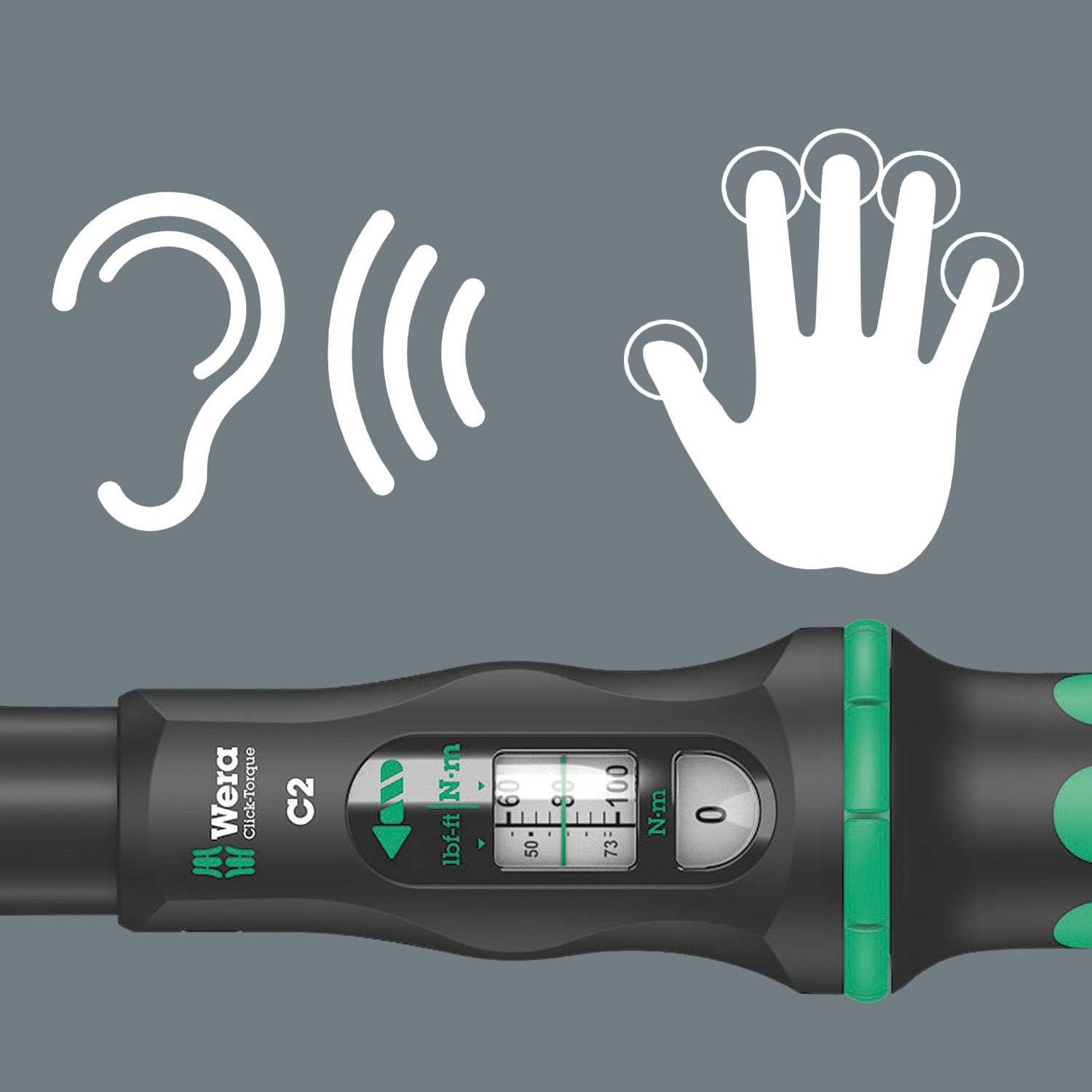 Wera 05075621001 Click-Torque C 2 klucz dynamometryczny z przełączaną grzechotką czarny, zielony 1/2', 20-100 Nm