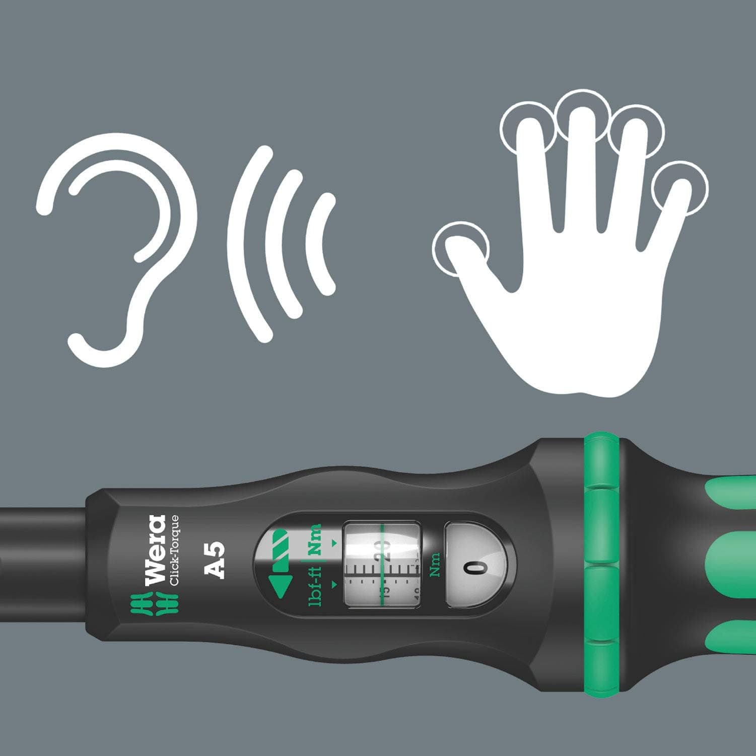 Wera 05075604001 Click-Torque A 5 klucz dynamometryczny z przełączaną grzechotką, 1 W, 1 V, 1/4' kwadrat, 2.5 - 25 Nm