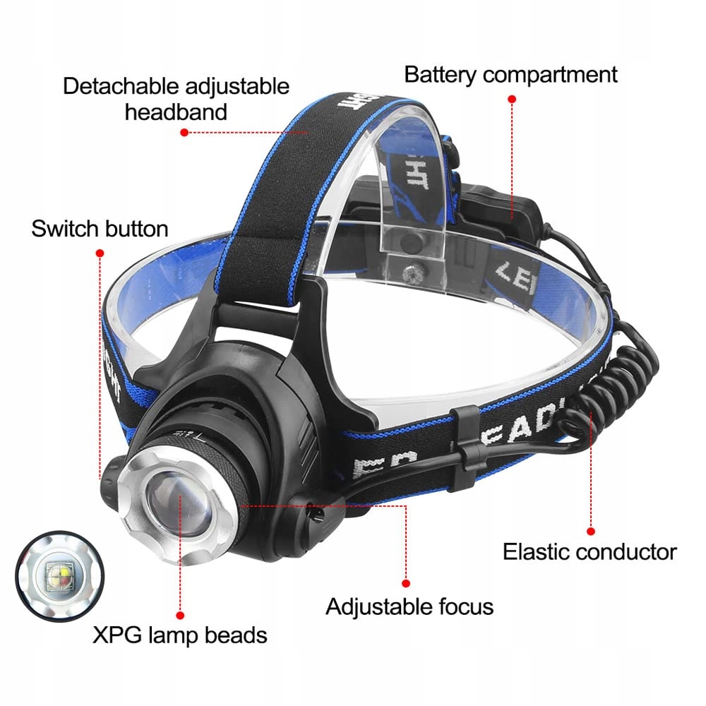 Regulacja zoomu i obrót o 90°: Regulowany zoom kolorowych reflektorów pozwala kontrolować odległość i zasięg światła. Możesz dostosować obszar ostrości, aby uzyskać reflektor lub światło rozproszone. Latarka na głowę obraca się o 90°, idealna do różnych zastosowań kątowych.