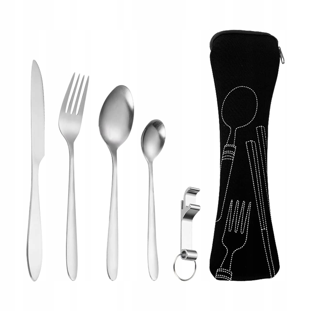 WHC Zestaw Sztućców 1 Osoba Stal Nierdzewna Zestaw Turystyczny Z Etui