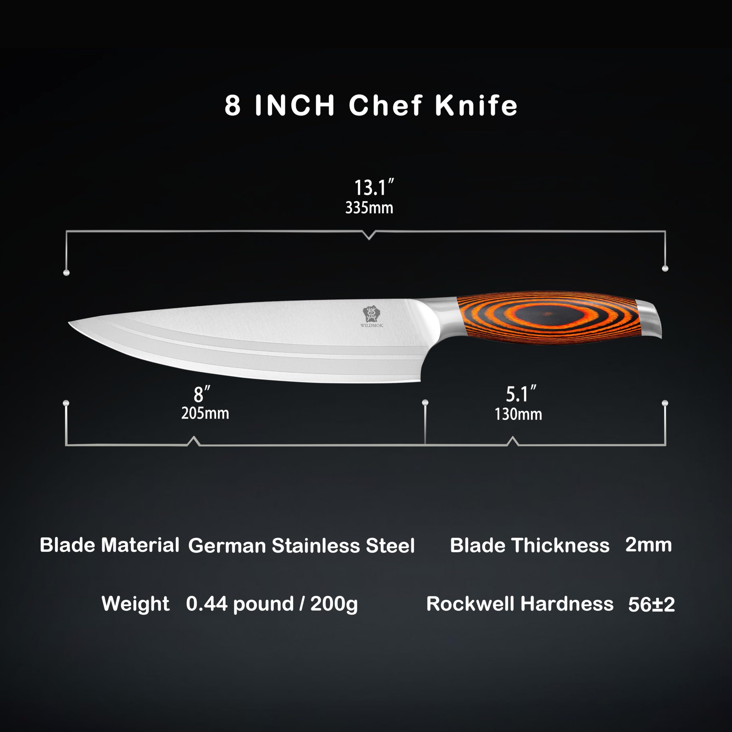 WILDMOK Nóż Szefa Kuchni 20,5cm Niemiecka Stal Ergonomiczny Uchwyt
