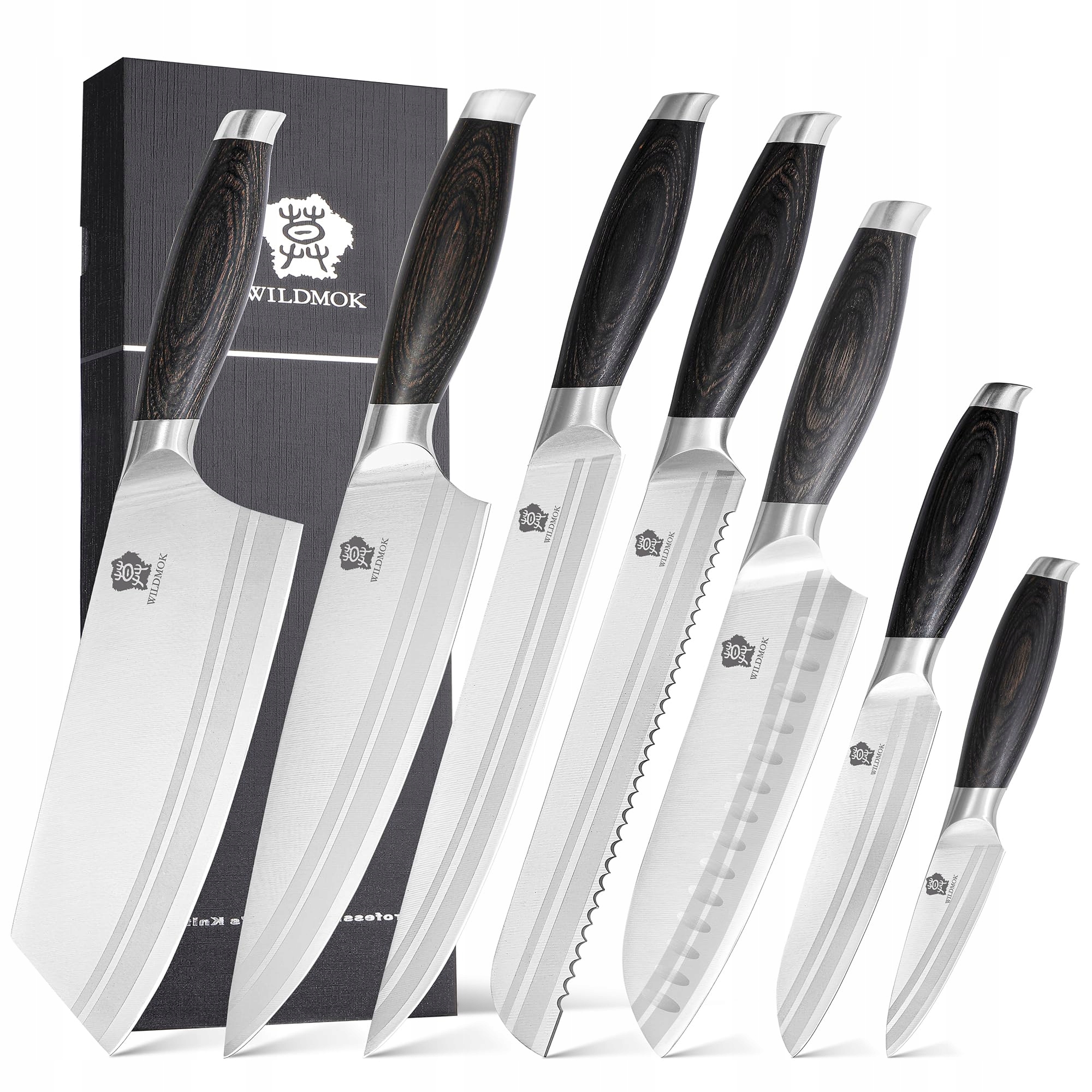 WILDMOK Zestaw Noży Kuchennych 7 Sztuk Niemiecka Stal Nierdzewna Pakkaholz