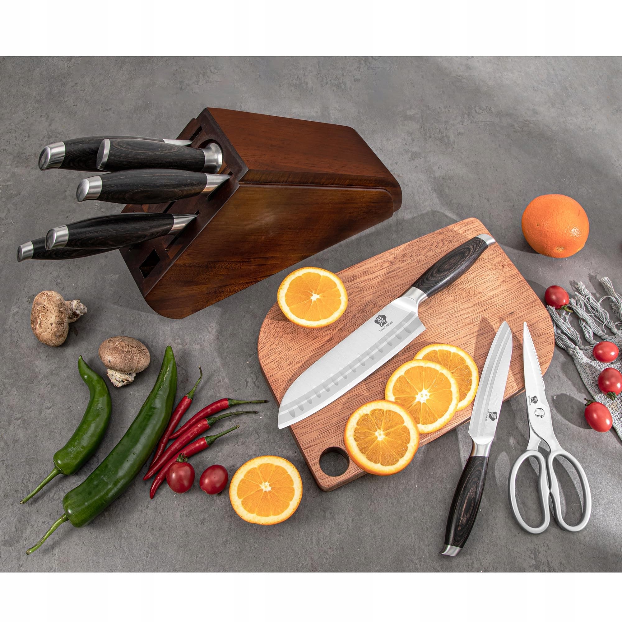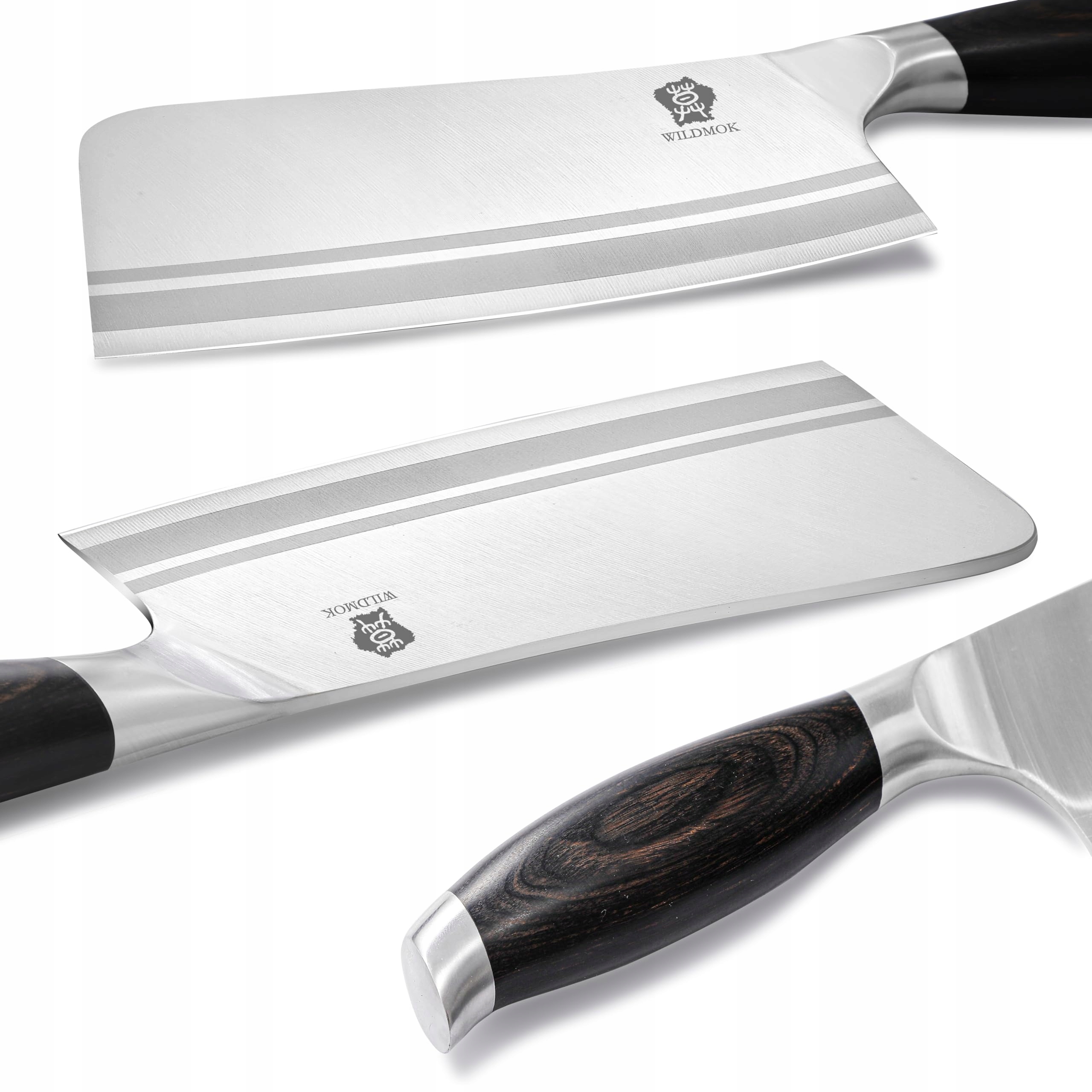 WILDMOK Zestaw Noży Kuchennych 9-częściowy Blok Drewniany Stal Nierdzewna