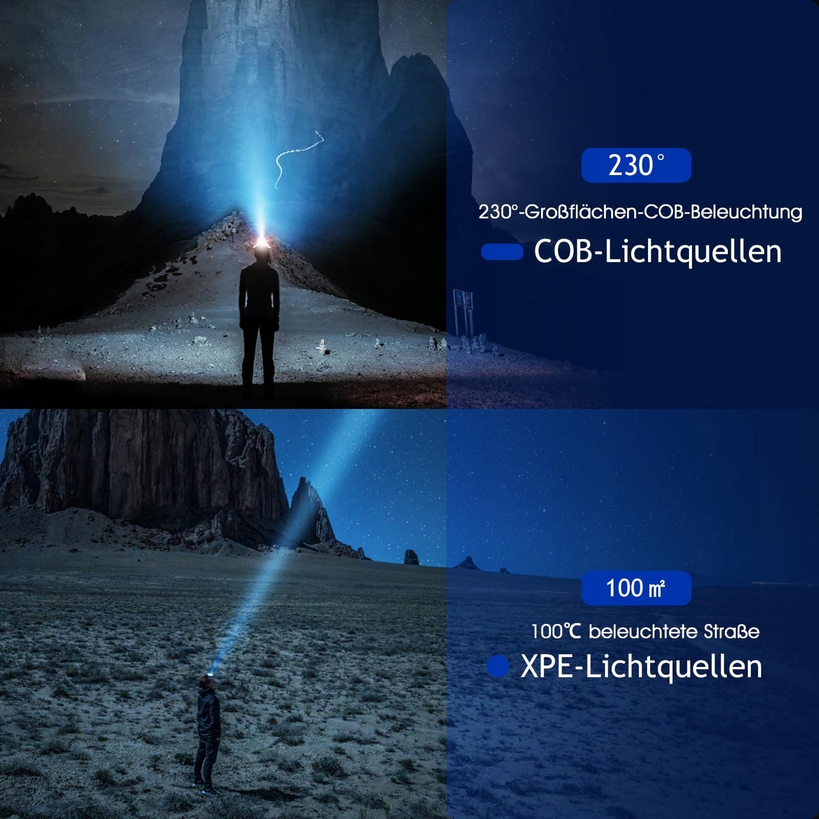 [Inteligentny czujnik & 230° szerokokątne oświetlenie]Latarka czołowa LED ładowalna z wysokiej jakości czujnikiem podczerwieni, kliknij przełącznik, aby włączyć źródło światła i machnij ręką, aby sterować latarką czołową. Latarka czołowa LED ładowalna oferuje ultra szeroki kąt widzenia 230°, aby łatwiej oświetlić ciemne otoczenie niż zwykła latarka LED, pozostawiając Ci wolne ręce, aby skupić się na czymś innym.