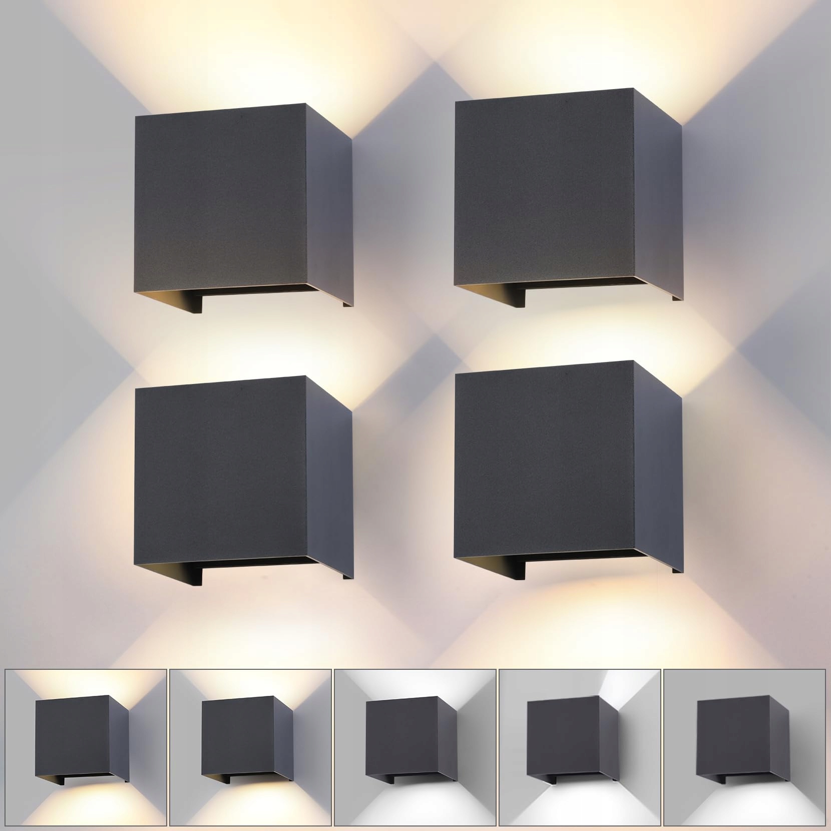 wisdom line kinkiet wewnętrzny i zewnętrzny zestaw 4 szt. z oświetleniem w górę i w dół, 15W LED 3 temperatury barwowe, IP65 wodoodporny, kąt światła 0-120° płynnie regulowany, w kolorze antracytowym