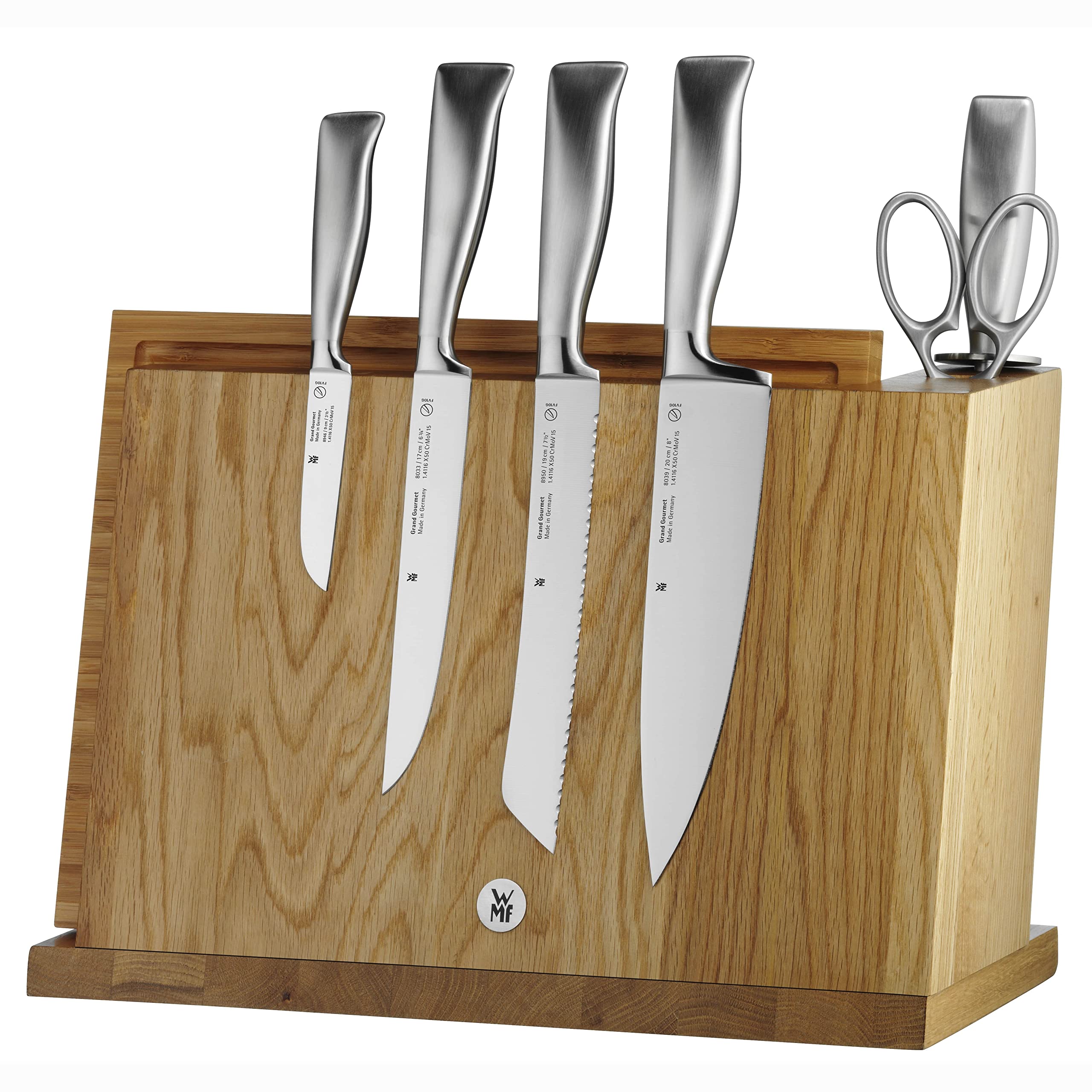 WMF magnetyczny blok na noże bez noży, z deską do krojenia, nie wyposażony, drewno, dąb, pusty, na 6 noży, 1 ostrzałkę, 1 nożyczki, magnetyczny