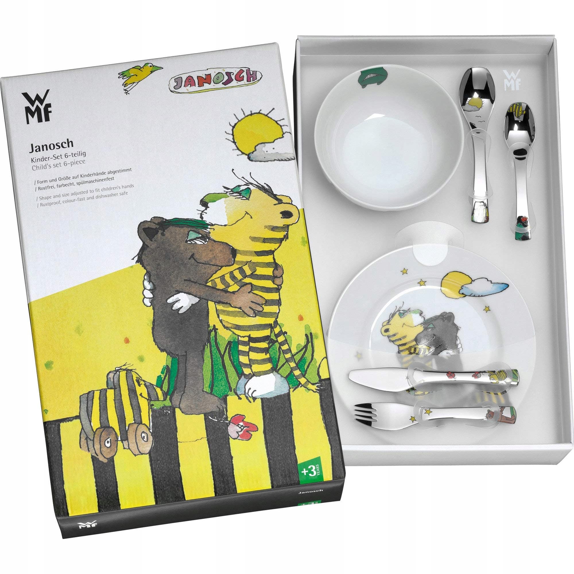 WMF Janosch Zestaw naczyń dziecięcych 6-częściowy, naczynia dla dzieci z dziecięcymi sztućcami od 3 lat, Cromargan stal nierdzewna polerowana, nadaje się do mycia w zmywarce