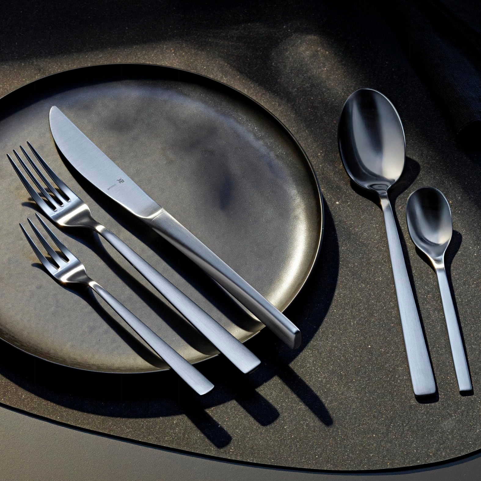 Materiał: stal nierdzewna Cromargan protect 18/10, matowa. Elementy sztućców wykonane z Cromargan protect są odporne na kwasy spożywcze, neutralne smakowo, nierdzewne, nadające się do mycia w zmywarce i odporne na zarysowania