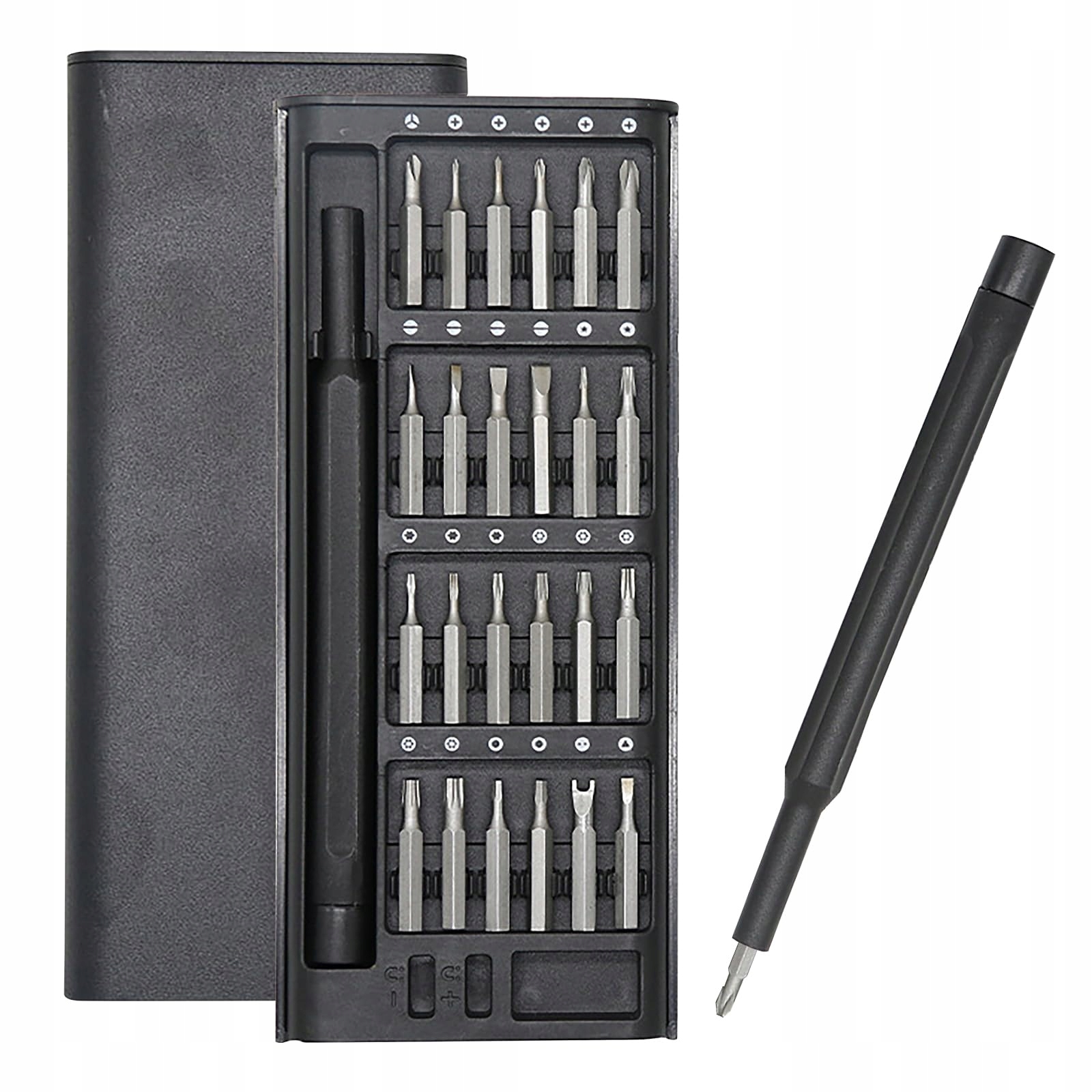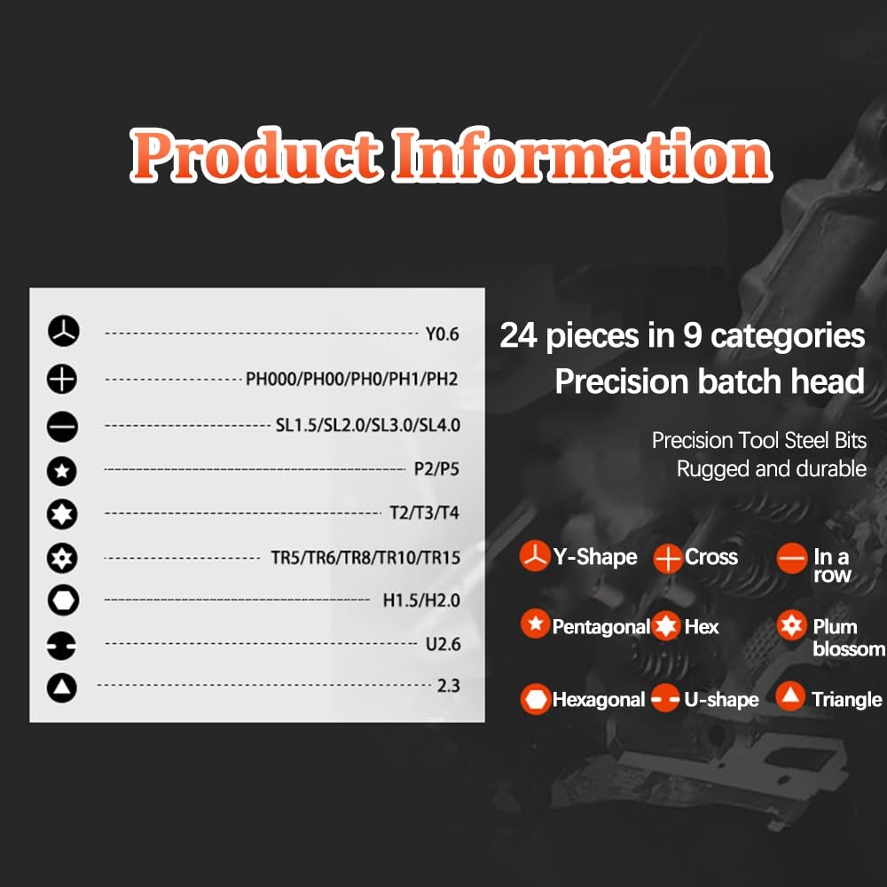 Zestaw wkrętaków 28 w 1: Mini zestaw wkrętaków zawiera 24 podwójne końcówki wkrętaków, które zapewniają, że masz najmniejszy, ale najbardziej kompletny zestaw narzędzi elektronicznych. Wykonane ze stali CRV, te mikro końcówki wkrętaków oferują wyjątkową wytrzymałość i wydłużoną żywotność, idealne do różnych zadań naprawczych.