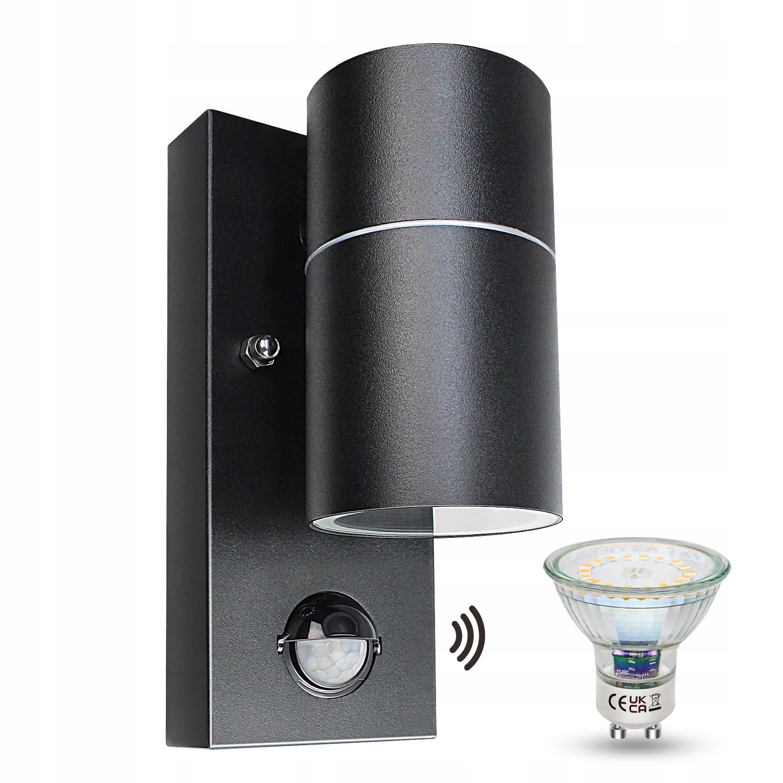 WONDLUMI Lampa Zewnętrzna z Czujnikiem Ruchu GU10 Czarna IP44 LED 230V