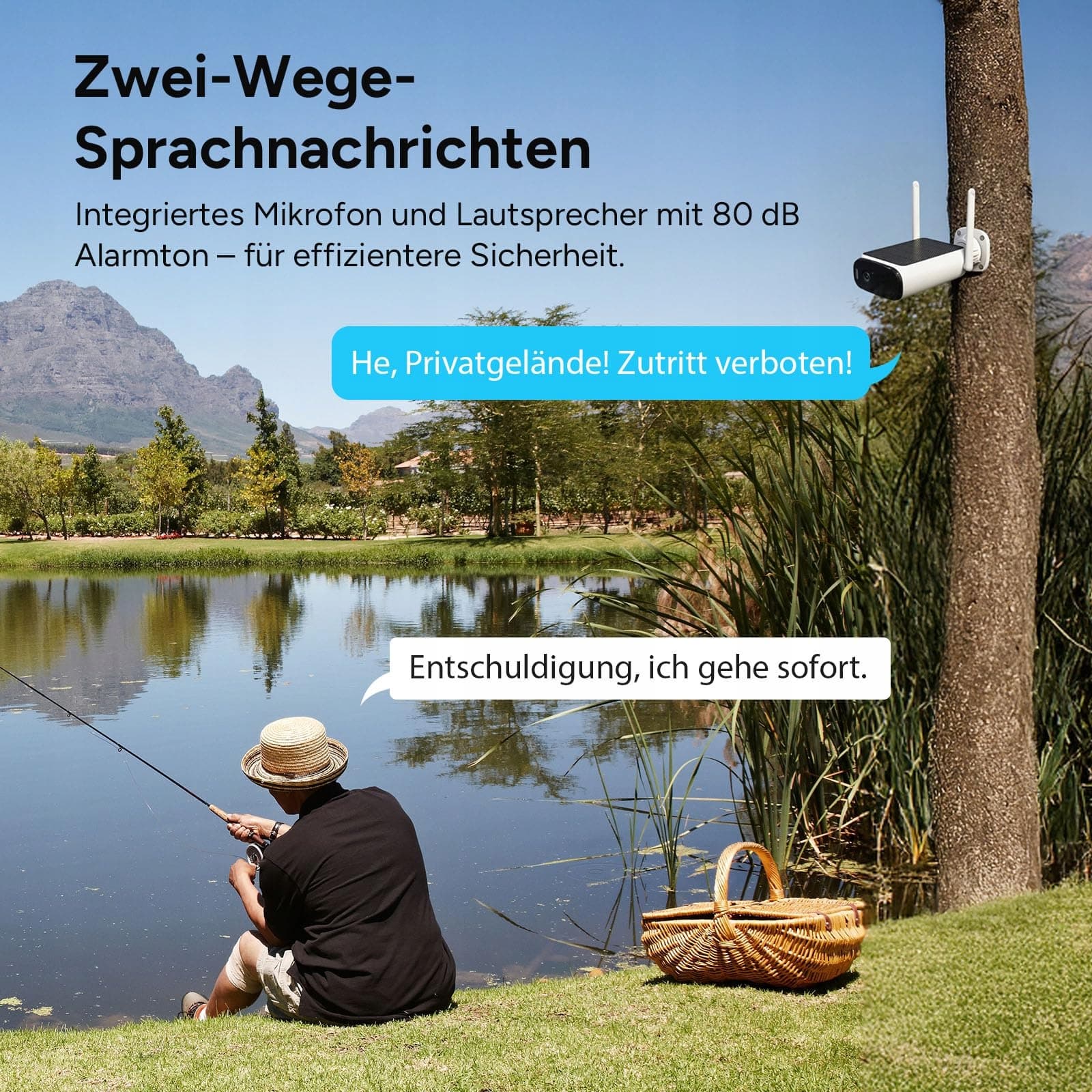 2K-Ultra-HD i 130° szeroki kąt: Nasza kamera zewnętrzna z panelem solarnym jest wyposażona w obiektyw szerokokątny 3 megapiksele oraz wbudowany reflektor zapewniający kolorowe widzenie nocne – zarówno w dzień, jak i w nocy dostarcza wyraźne i ostre obrazy. Kąt widzenia 130° obejmuje duże obszary zewnętrzne i zapewnia kompleksowy monitoring bez martwych stref.