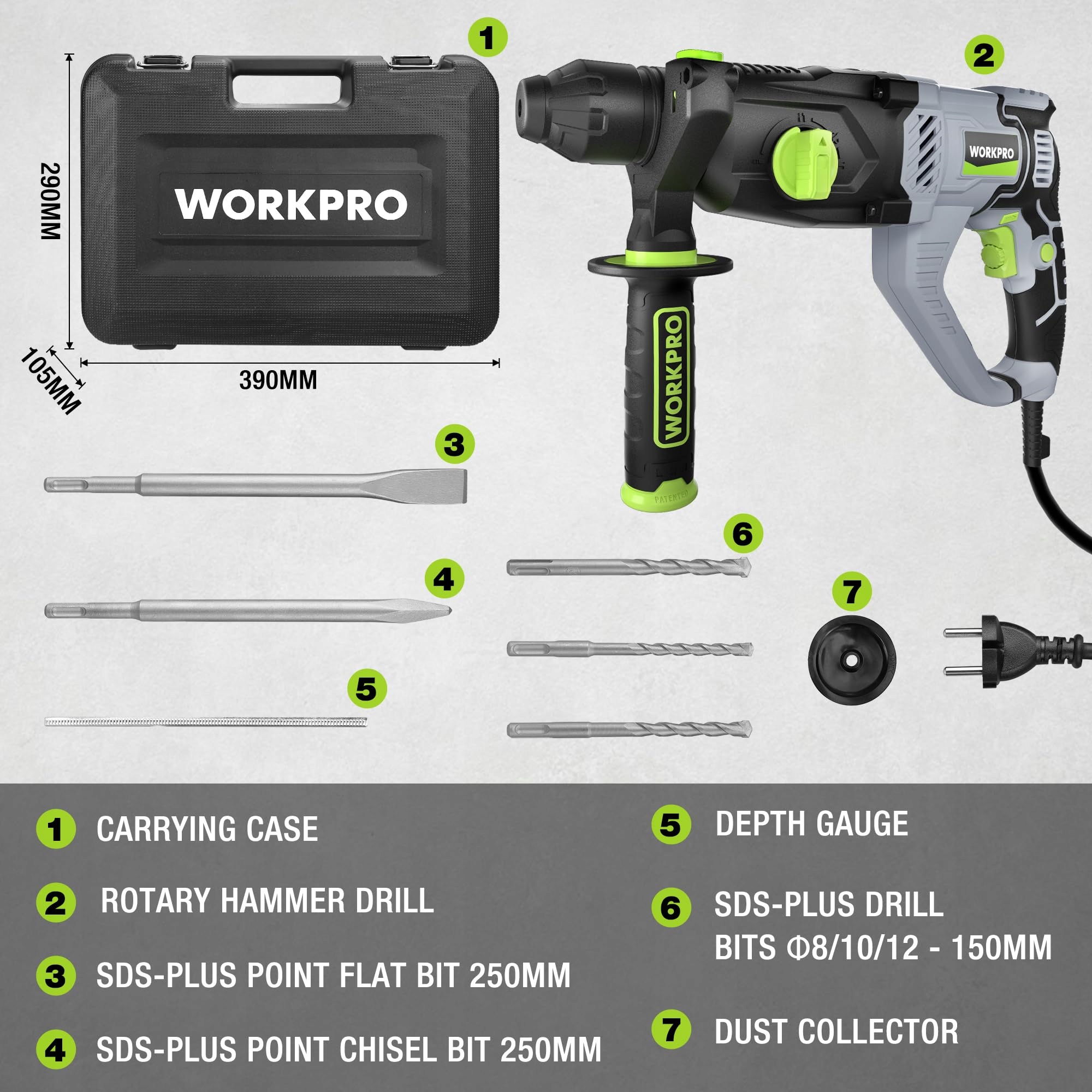 WORKPRO Młotowiertarka SDS-Plus 1050W 3J 26mm Zestaw z Akcesoriami