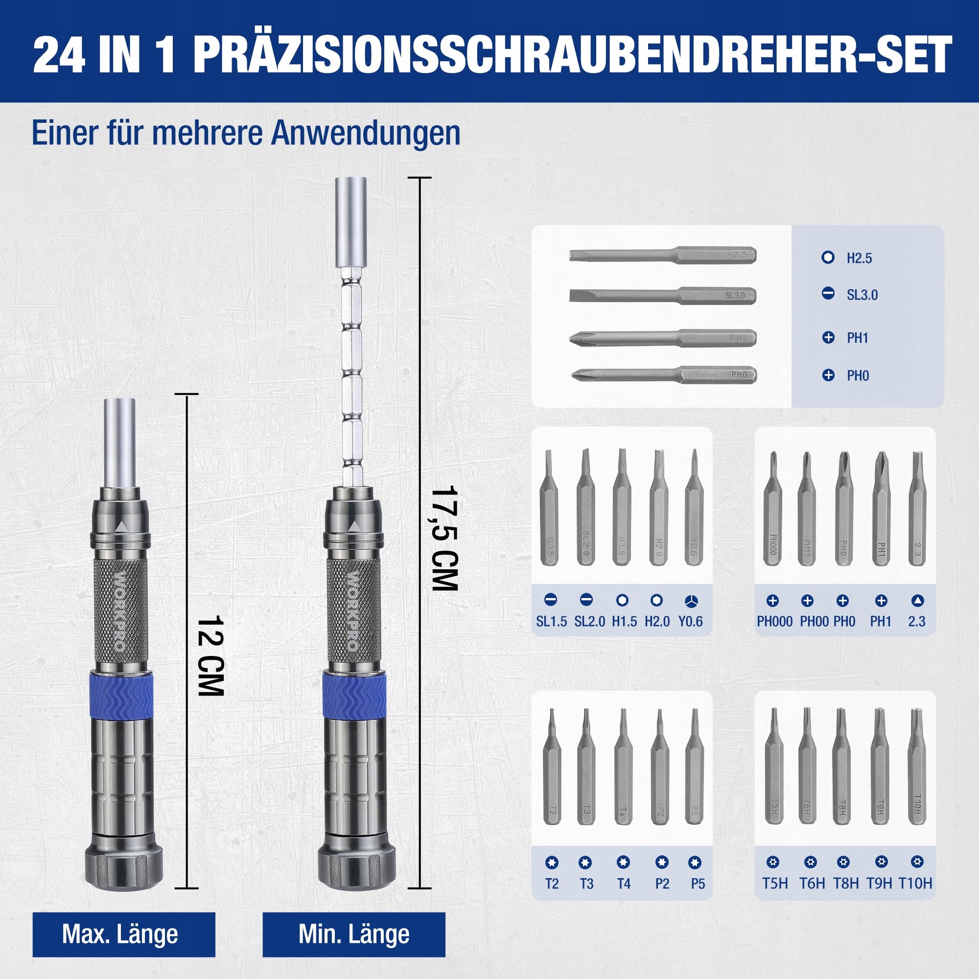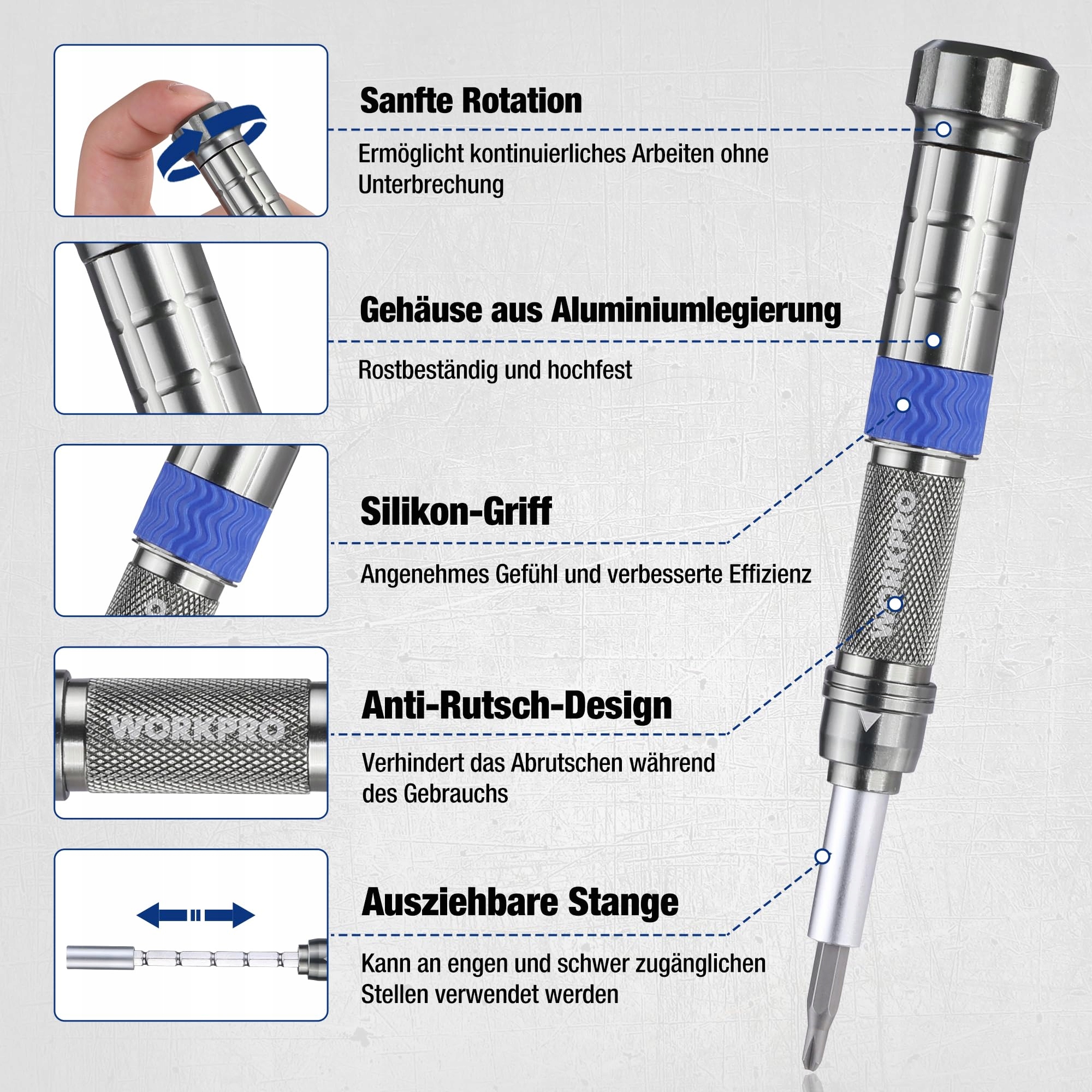 WORKPRO 24-w-1 Zestaw precyzyjnych wkrętaków, magnetyczny mini-wkrętak, z przedłużanym trzonkiem, wkrętak S2 z wieloma końcówkami do laptopów, telefonów, zegarków, naprawy okularów