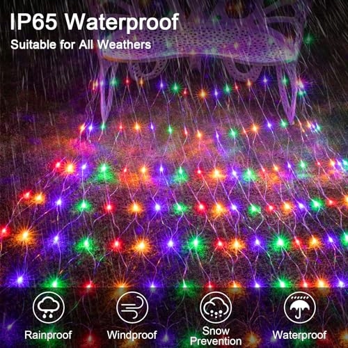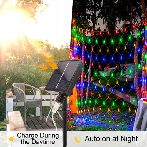 WoskjXas Lichternetz Solarleuchten Na Zewnątrz, 192 LED, 2 x 3 M Światełka Sieciowe z 8 Trybami, Wodoodporne Światełka na Drzewo, Projekt do Ogrodu, Balkonu, Płotu i Dekoracji Świątecznej (2M*3M, Kolorowe)