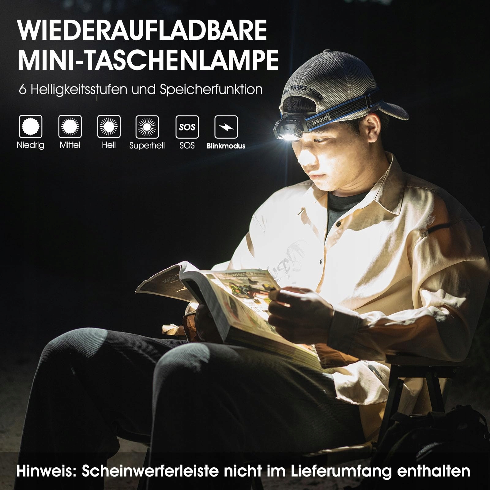 WIELOFUNKCYJNE ZASTOSOWANIE: Możesz ją przymocować do klamry latarki czołowej (nie dołączonej), aby używać jej jako latarki czołowej; Możesz podłączyć kabel typu C, aby kontrolować użycie latarki za pomocą czujnika zdalnego sterowania gestami (nie dołączonego), jest łatwa do przenoszenia i prosta w użyciu;