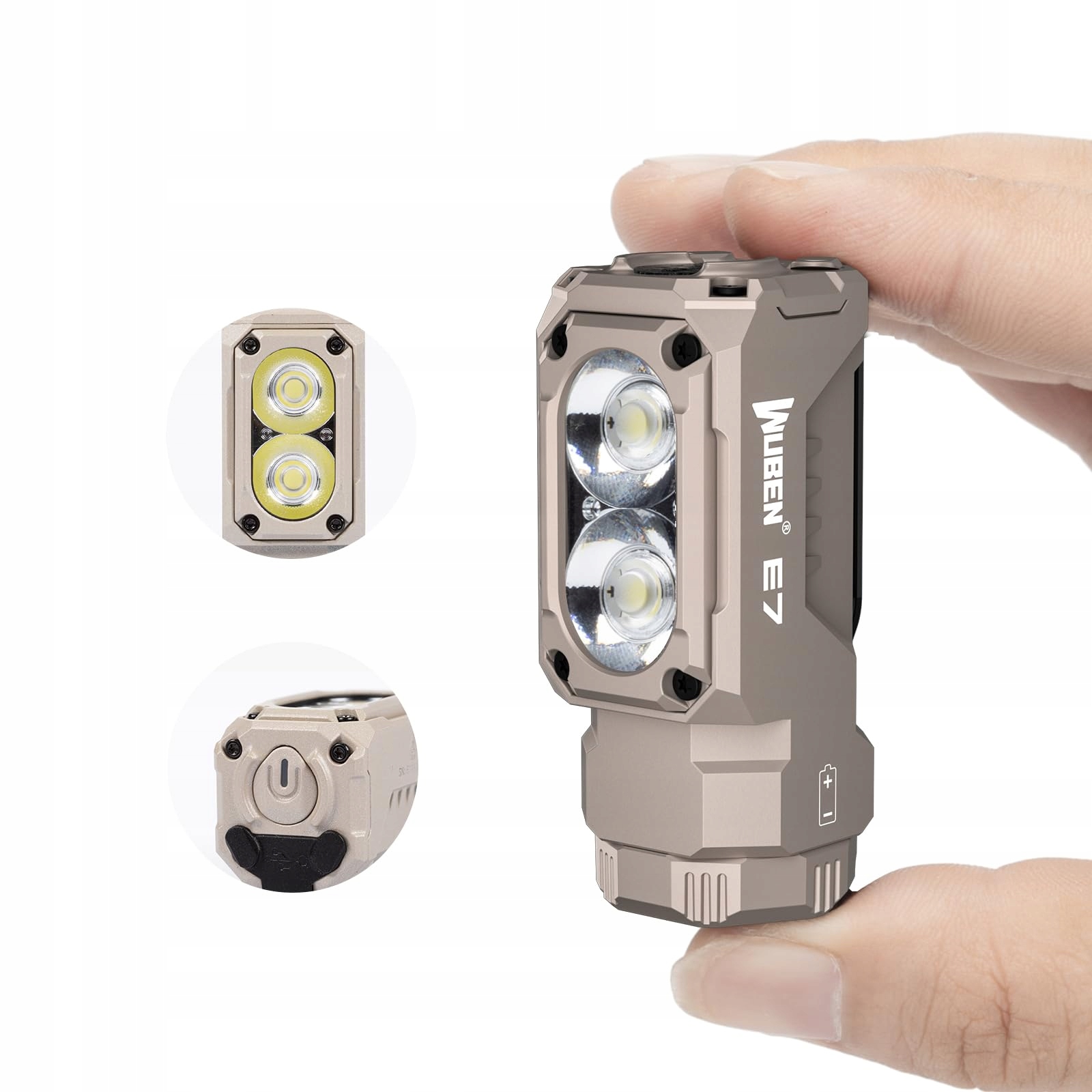 WUBEN E7 1800 Lumen Khaki Ładowalna Mini-Latarka z Magnesem – superjasna latarka EDC z 6 trybami, ładowalna LED typu C; latarka IP68 do czołówek, ratownictwa, kempingu