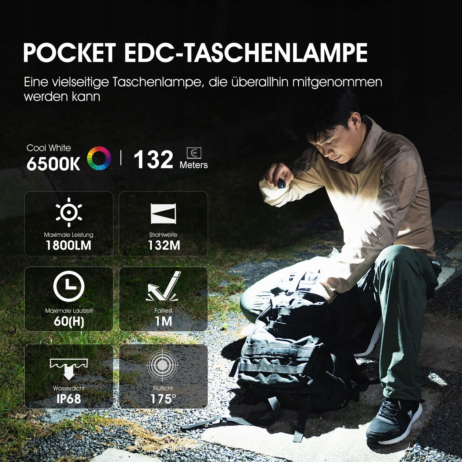 PERSONALIZOWANA LATARKA EDC: WUBEN E7 to wszechstronna latarka EDC, która pokazuje Twoją osobowość. Wygląd jest stylowy i modny, wyposażony w diody LED P9 o wysokiej jakości odwzorowania kolorów i 6500 K, które mogą zapewnić wysoką moc do 1800 lumenów i 175° ultra-szerokokątne światło. Jest to również bardzo stabilny reflektor; wystarczy, że dopasujesz go do ergonomicznego pasku na głowę;