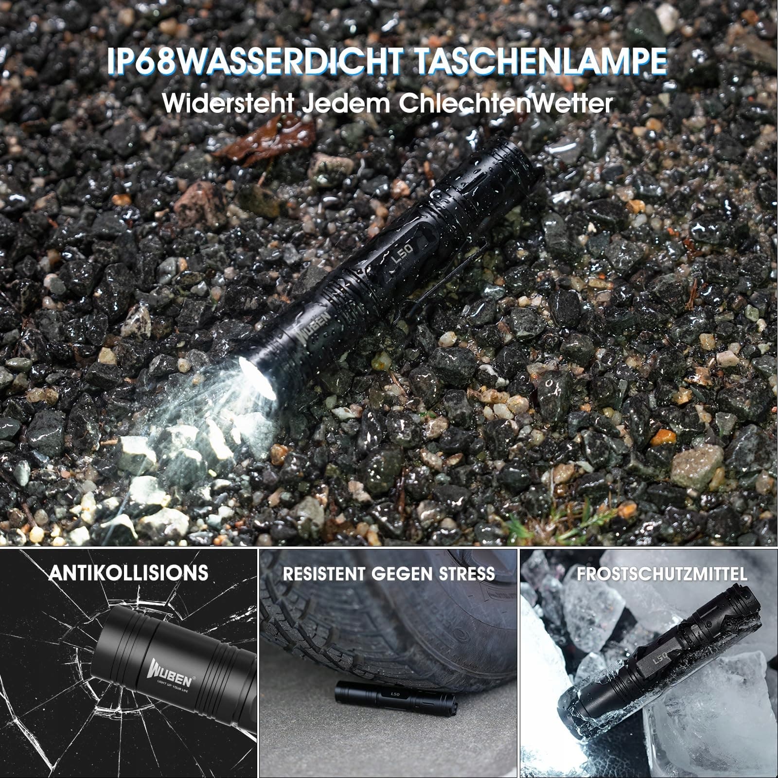 WYTRZYMAŁA/IP68 WODODPORNOŚĆ: Ta taktyczna latarka wykonana jest z wysokiej jakości stopu aluminium, jest odporna na upadki z wysokości 1,5 m, wodoodporna IP68, pyłoszczelna i antypoślizgowa. Jest solidna i trwała, wytrzymuje przypadkowe upadki i uderzenia. Nie musisz się martwić o ekstremalne warunki pogodowe, idealna do wszelkiego rodzaju codziennych, survivalowych, outdoorowych i taktycznych aktywności.