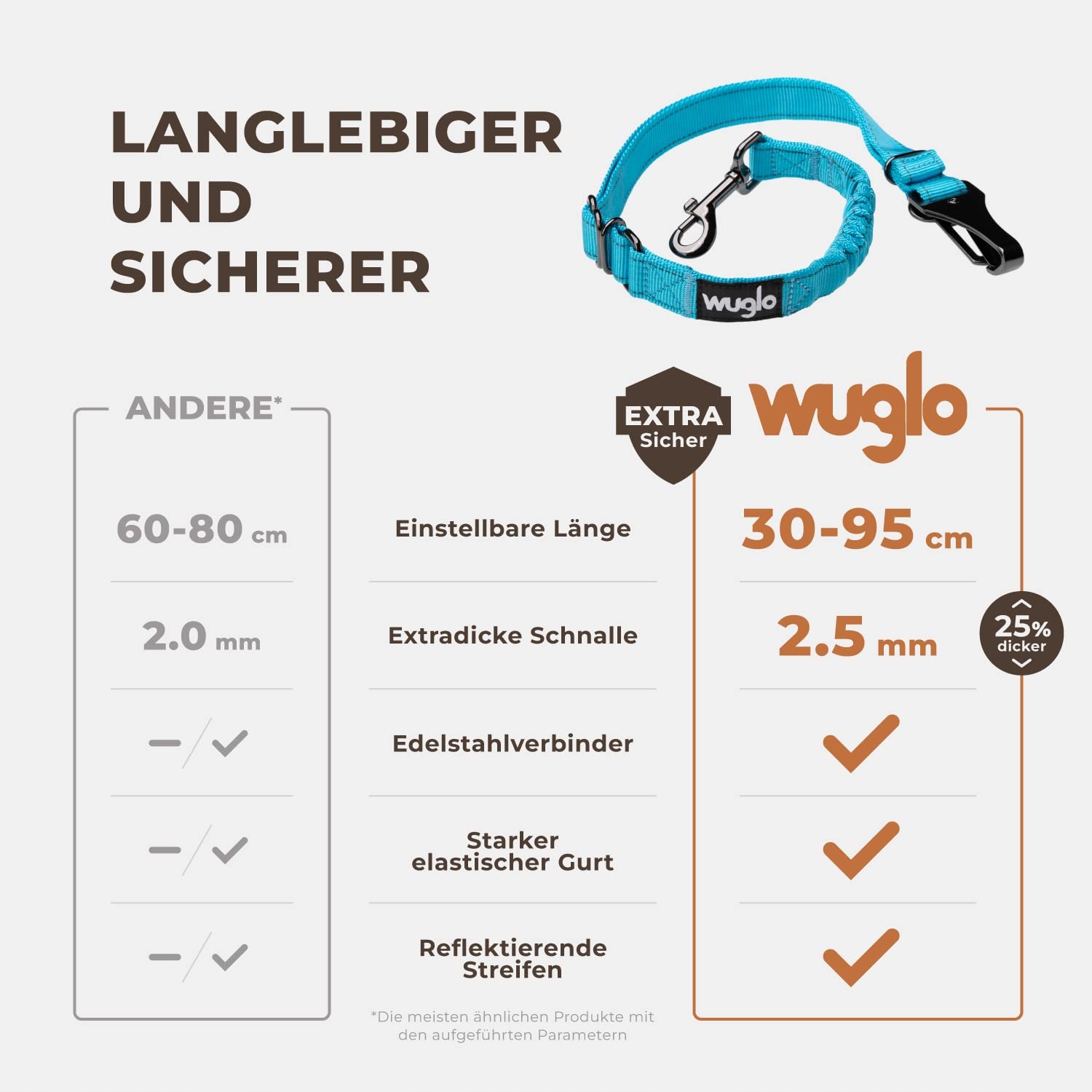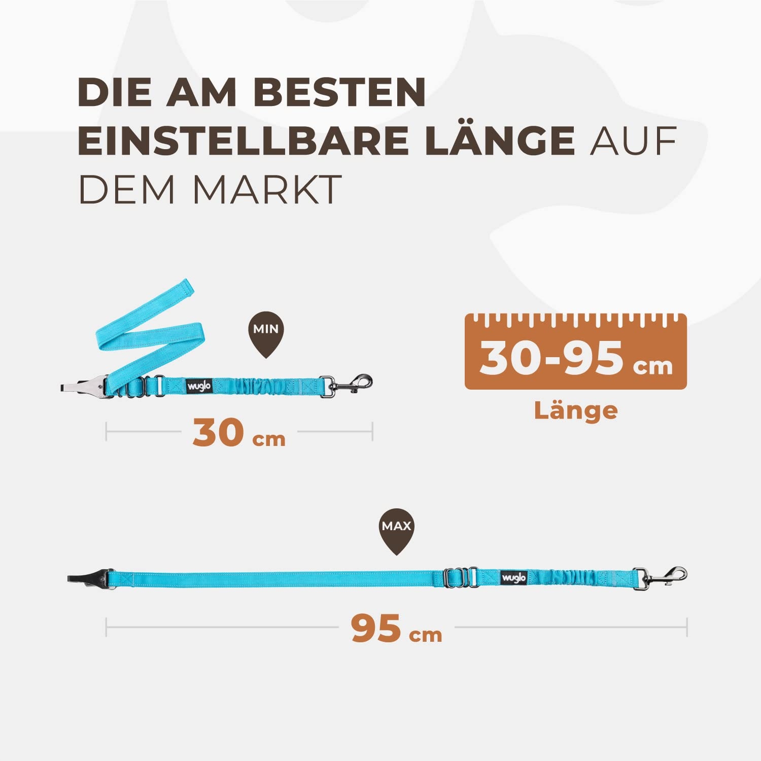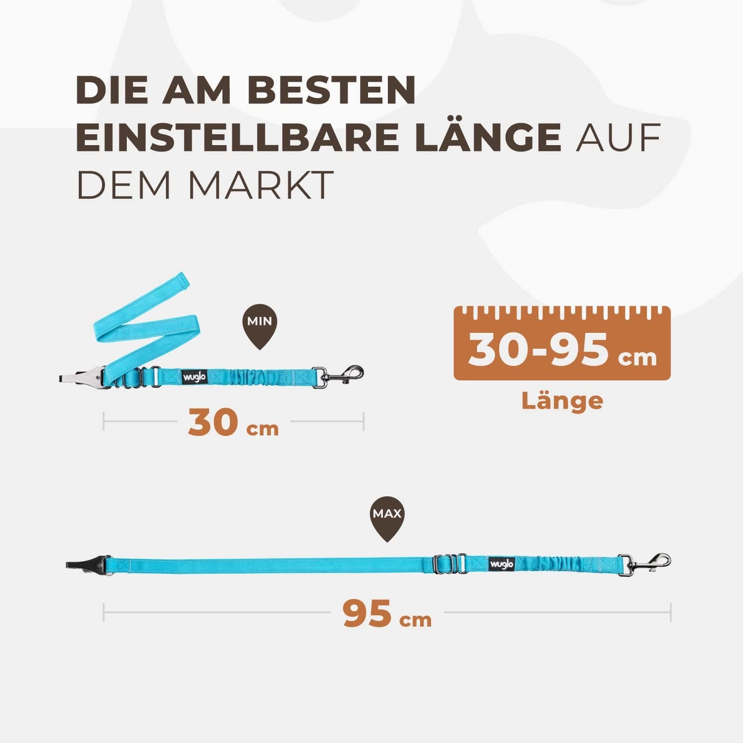 ŁATWO ZMIENIALNA DŁUGOŚĆ (30-95 cm) - Szelki samochodowe Wuglo dla psa mają unikalny design, który można zmienić w zaledwie kilka sekund. Dzięki naszemu pasowi samochodowemu dla psa, Twój zwierzak podróżuje wygodnie i bezpiecznie.