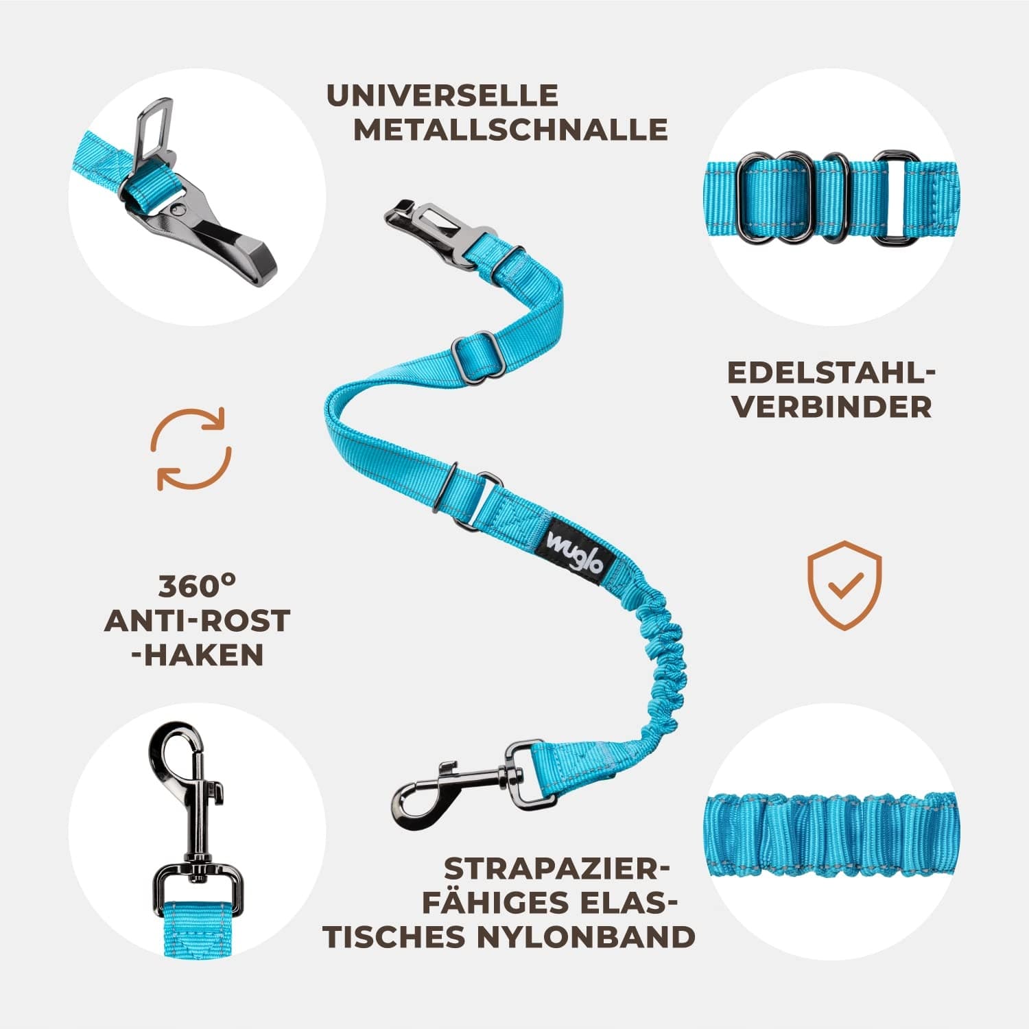 MOCNY ELASTYCZNY PAS - Smycz samochodowa Wuglo dla psa ma elastyczną część, która chroni przed urazami spowodowanymi nagłym hamowaniem lub ostrymi zakrętami. Pas dla psa zapobiega ograniczeniom i zapewnia, że Twój pies czuje się komfortowo.