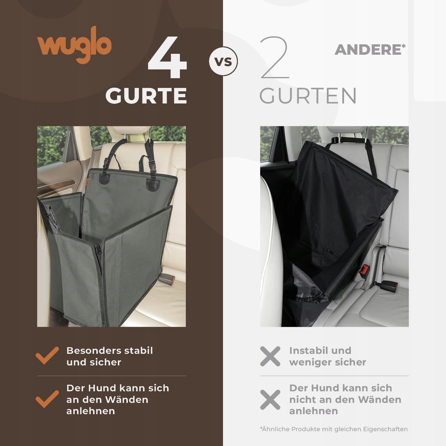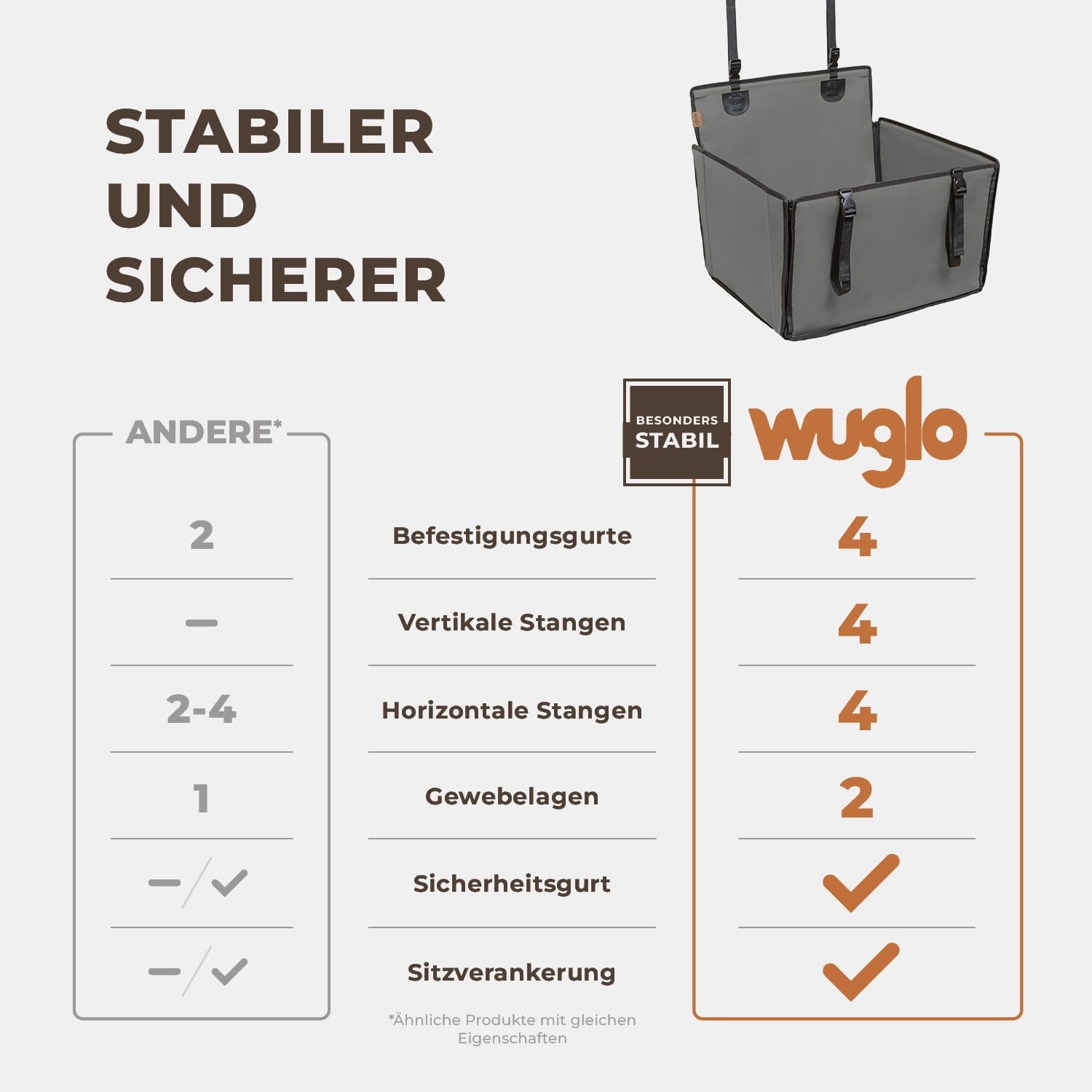 Wuglo Extra Stabilny fotelik samochodowy dla psów z pasem bezpieczeństwa – Wodoodporny i wytrzymały fotelik samochodowy dla psów na tylny fotel z 4 pasami mocującymi, odpowiedni dla psów średniej wielkości do 18 kg