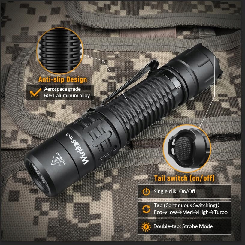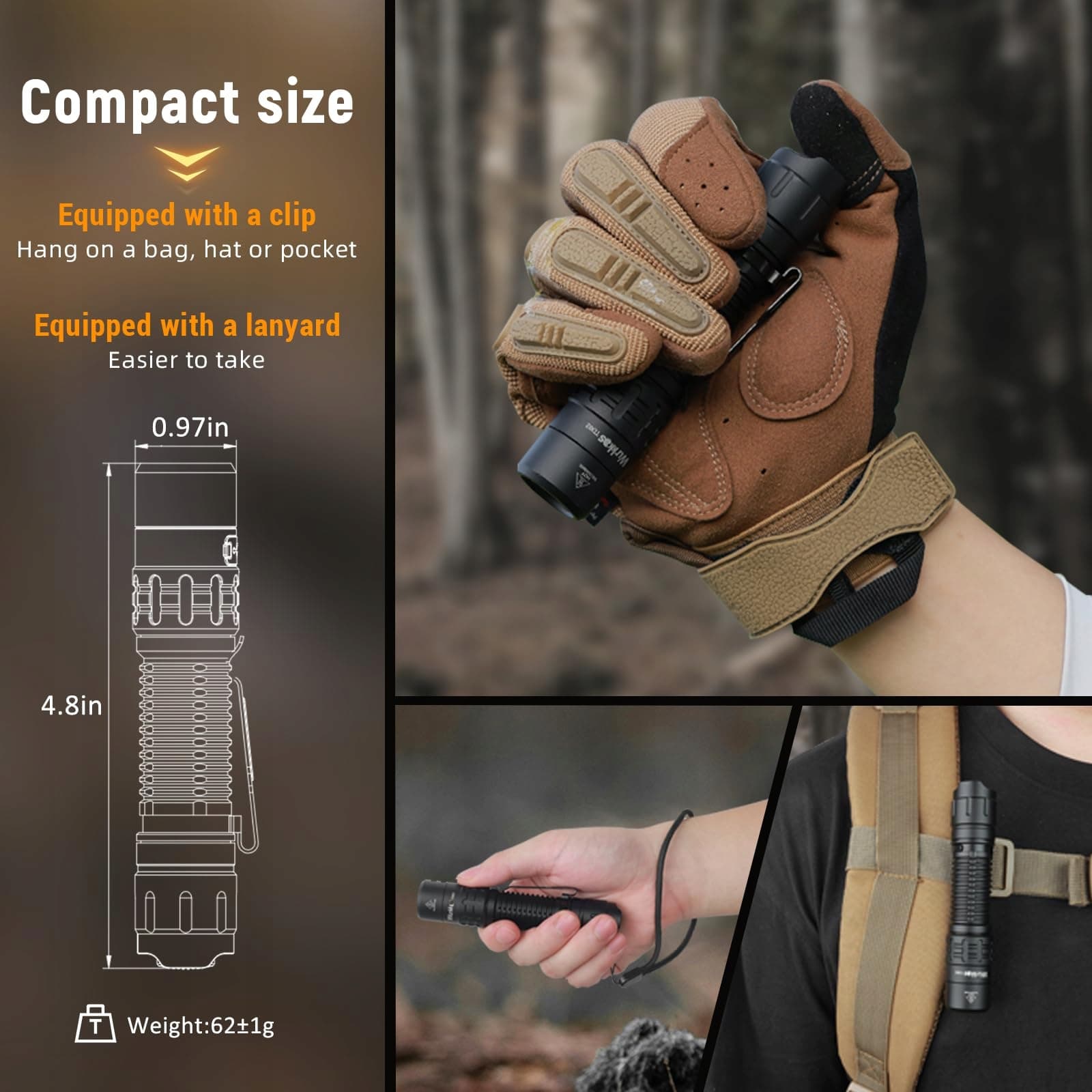 Wurkkos TD02 Led Taktische Taschenlampe, Ekstremalnie Jasna 2000 Lumen USB C Ładowana Latarka, IP68 Wodoodporna z 6 Trybami Ręczna Mała Latarka do Aktywności na Zewnątrz i w Pomieszczeniach