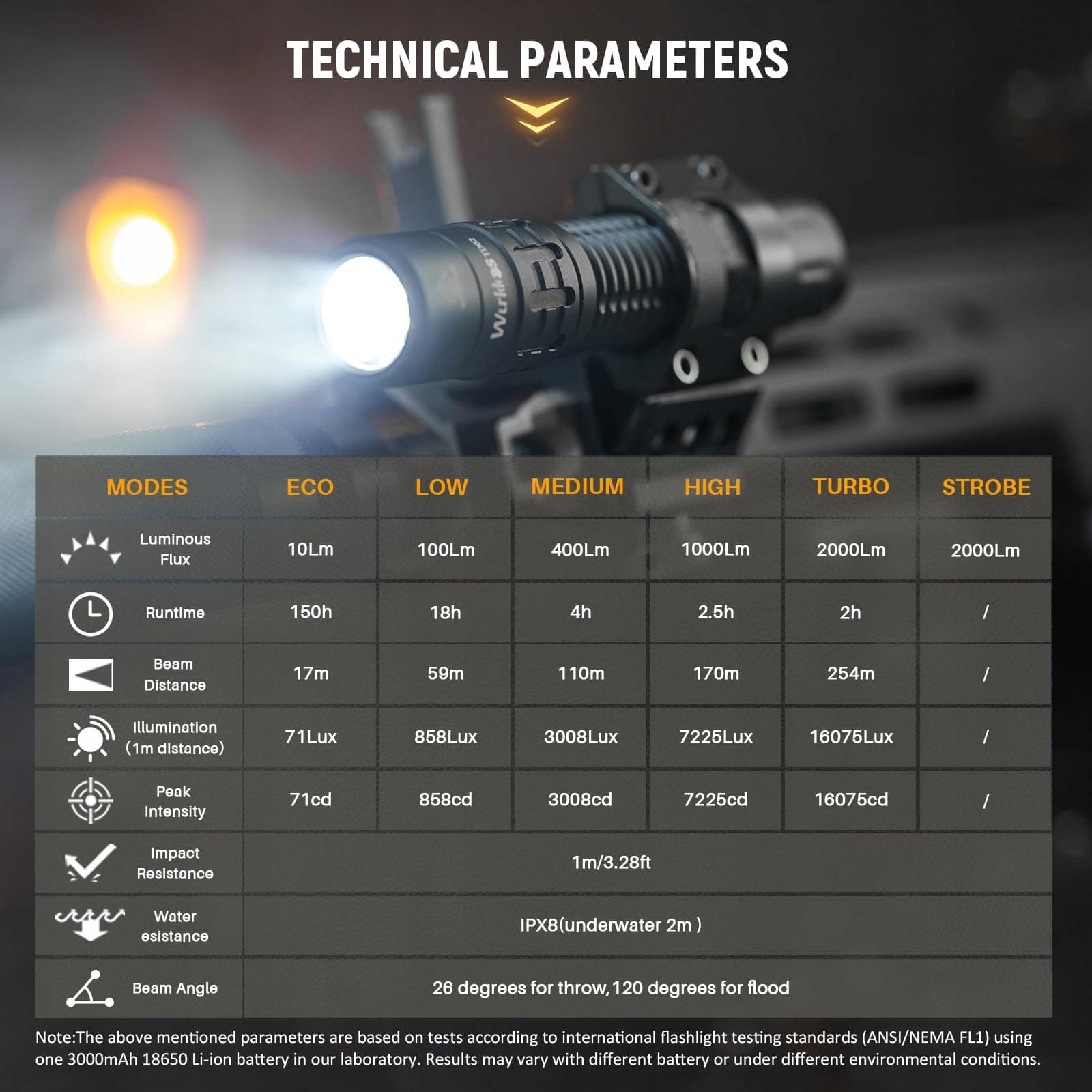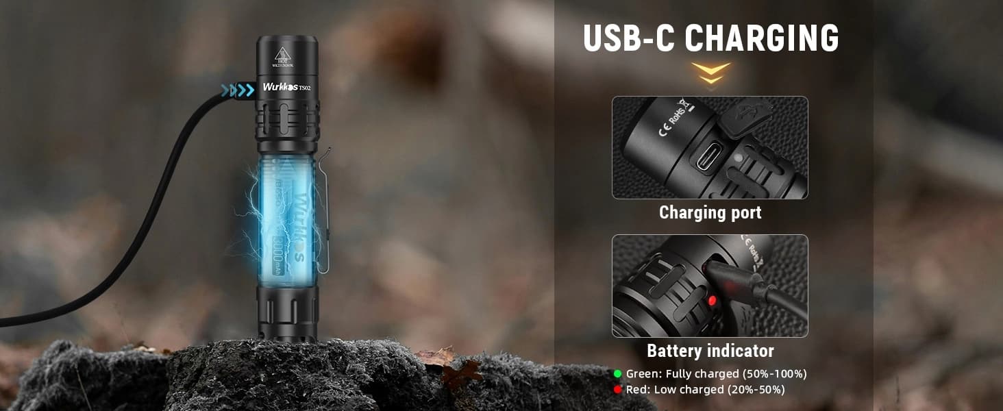 WURKKOS TD02 Latarka Led 2000 Lumen USB C Wodoodporna 6 Trybów | Premium Supply