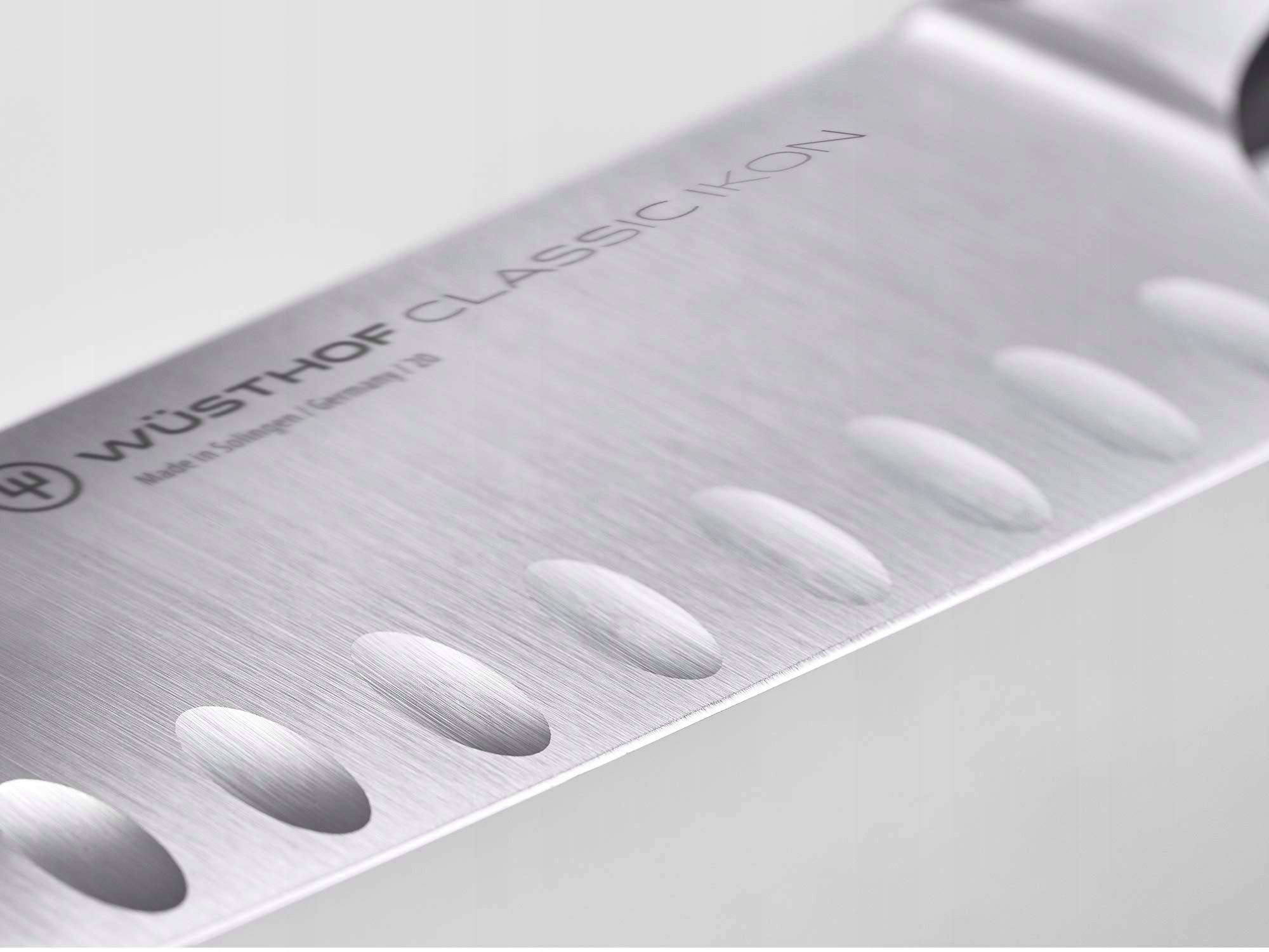 Wygładzone wgłębienia (małe zagłębienia na ostrzu) tworzą poduszki powietrzne i zapobiegają przyklejaniu się cienkich plasterków. Jasne, łatwe w pielęgnacji uchwyty zapewniają nienaganną higienę i wyglądają dobrze nie tylko w białych kuchniach