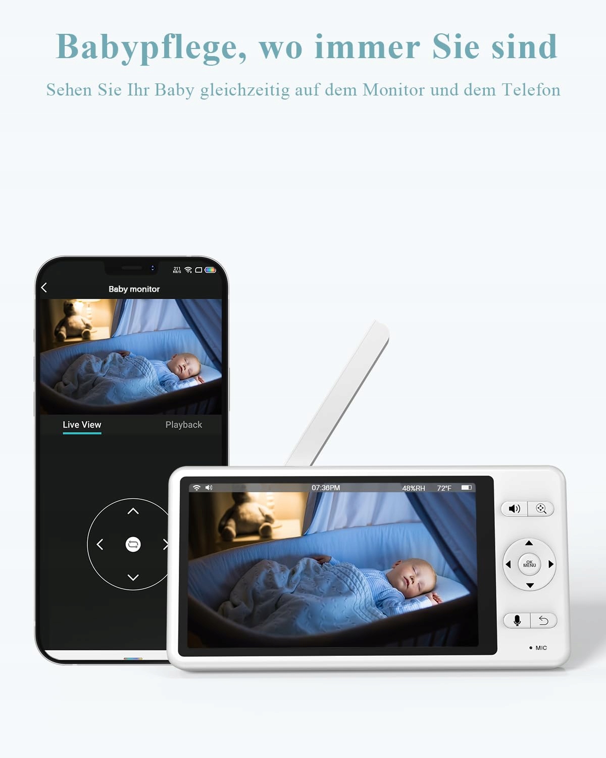 [Skup się na swoim dziecku, gdziekolwiek jesteś]--- Jednoczesne monitorowanie Twojego dziecka przez 5,5'' wyświetlacz i aplikację WUUK. Technologia długozasięgowego połączenia na odległość 305 metrów, zdalne sterowanie aplikacją telefoniczną, opieka bez ograniczeń lokalizacyjnych. Gdziekolwiek jesteś, po prostu upewnij się, że Twoje dziecko jest zawsze bezpieczne.