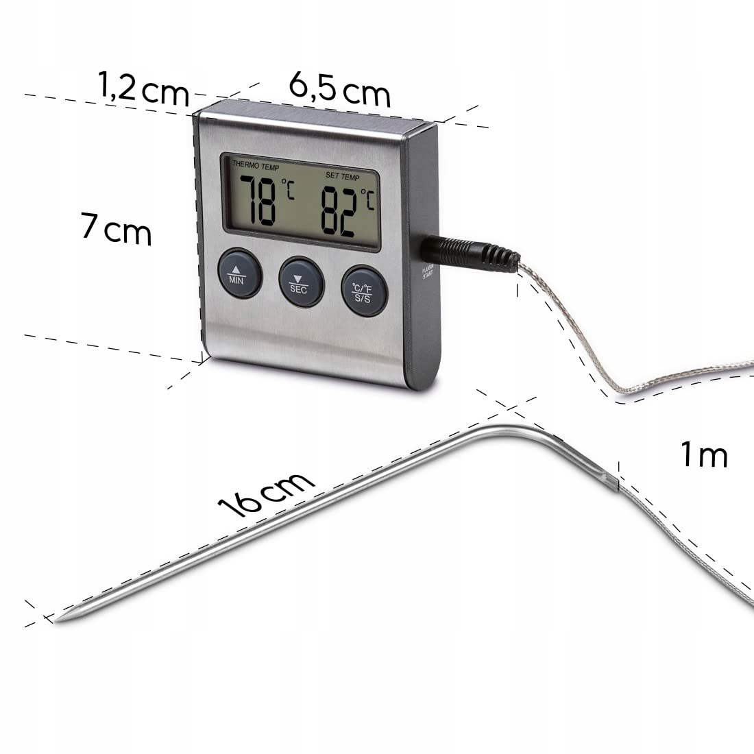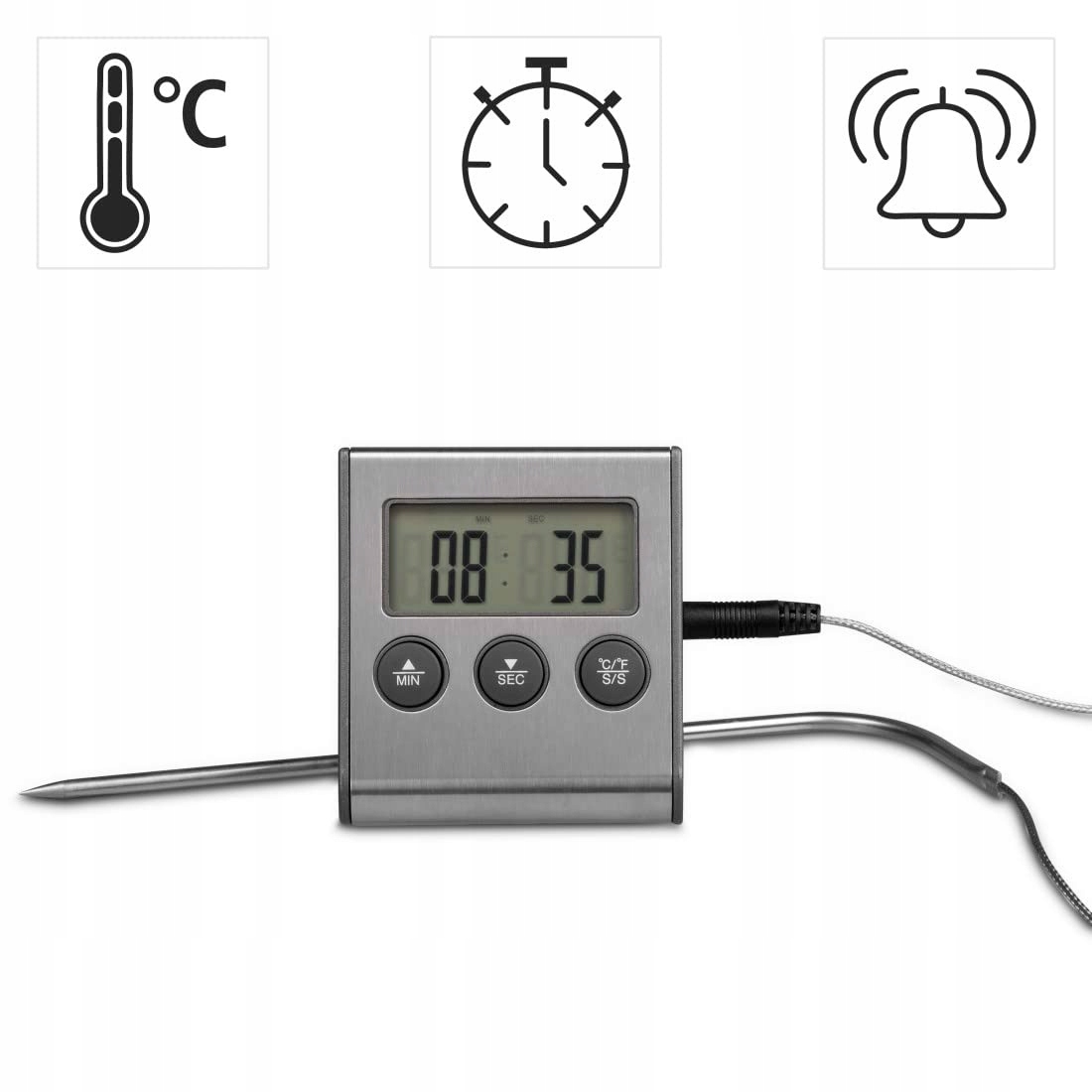 Cyfrowy termometr do pieczenia 2w1: termometr i zegar kuchenny w jednym (stoper i timer odliczający do maks. 99 minut i 59 sekund)