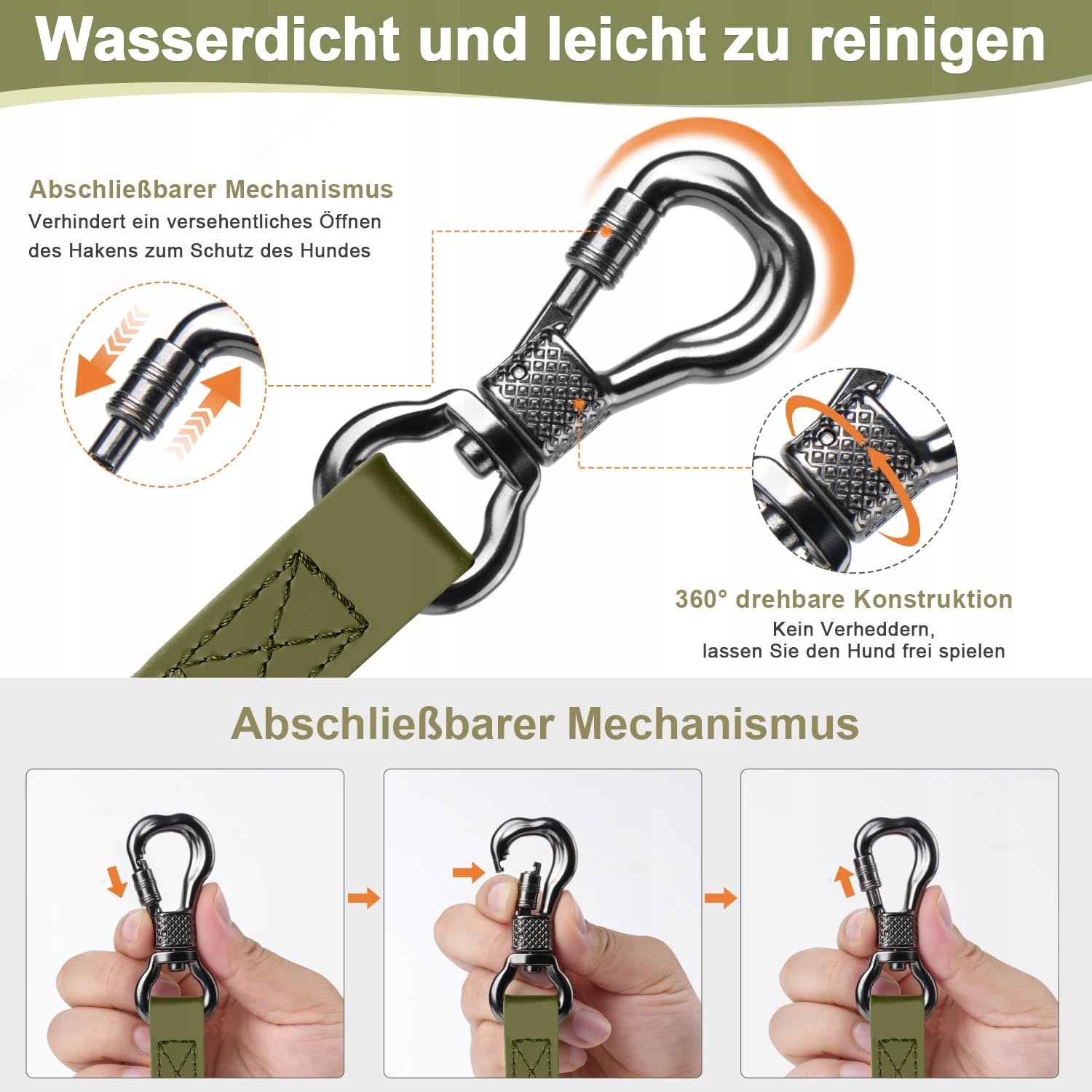 [Ulepszony zamykany karabińczyk]Nasz piękny metalowy karabińczyk w kształcie kości jest chwalony przez właścicieli zwierząt na całym świecie. Dzieje się tak, ponieważ wytrzymuje siłę ciągnącą do 200 KG i posiada dodatkowy mechanizm zamykający. Zamykane wzornictwo zapobiega przypadkowemu otwarciu karabińczyka przez psa i jego ucieczce. Karabińczyk można obracać o 360°, co pozwala psu swobodnie węszyć.