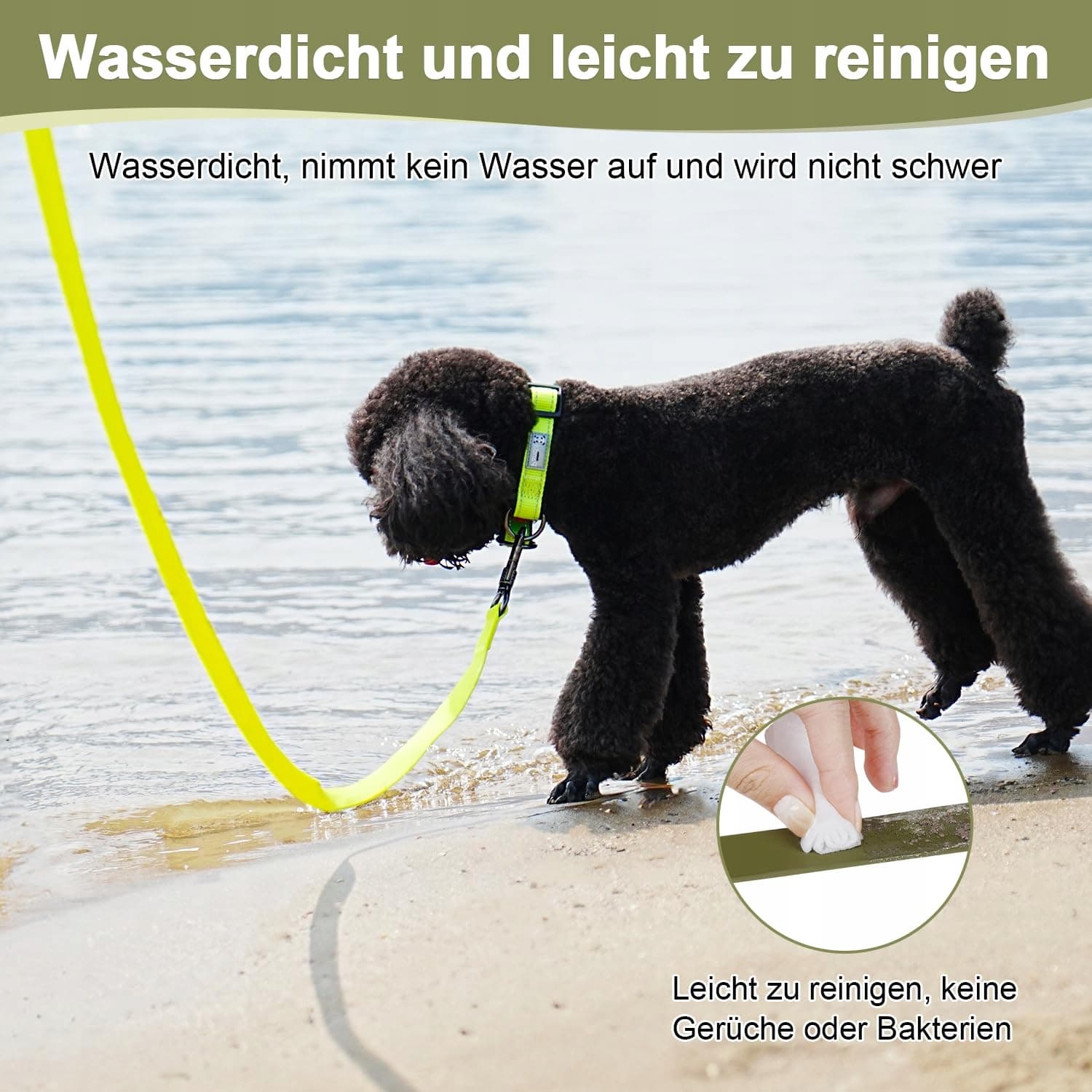 [Wytrzymała i wodoodporna linka treningowa 10M dla psów]Wewnętrzna warstwa smyczy wykonana jest z poliestru, a zewnętrzna warstwa z wodoodpornego PVC. Ta konstrukcja zapewnia, że smycz jest bardzo odporna na rozdarcia i wodoodporna. Dzięki naszej wodoodpornej lince treningowej psy mogą swobodnie bawić się lub pływać w jeziorach, nad morzem i na bagnach. Ponadto psy mogą swobodnie biegać po śniegu. Linka treningowa dla psów nie wchłania wody i nie staje się ciężka.