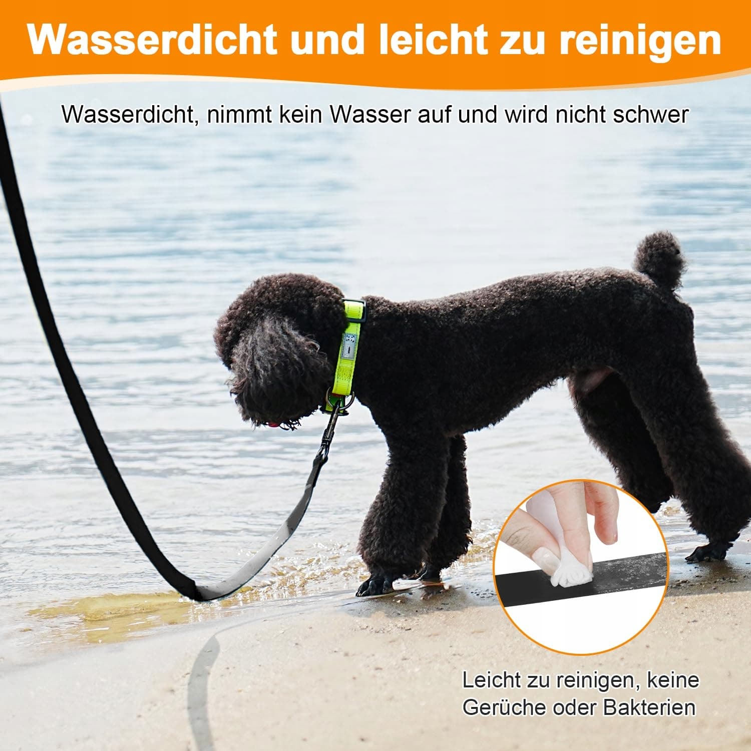[Wytrzymała i wodoodporna smycz treningowa 30M dla psów]Wewnętrzna warstwa smyczy dla psa wykonana jest z poliestru, a zewnętrzna warstwa z wodoodpornego PVC. Ta konstrukcja zapewnia, że smycz jest bardzo odporna na rozdarcia i wodoodporna. Dzięki naszej wodoodpornej smyczy treningowej psy mogą swobodnie bawić się lub pływać w jeziorach, nad morzem i na bagnach. Ponadto psy mogą swobodnie biegać po śniegu. Smycz treningowa dla psów nie wchłania wody i nie staje się ciężka.