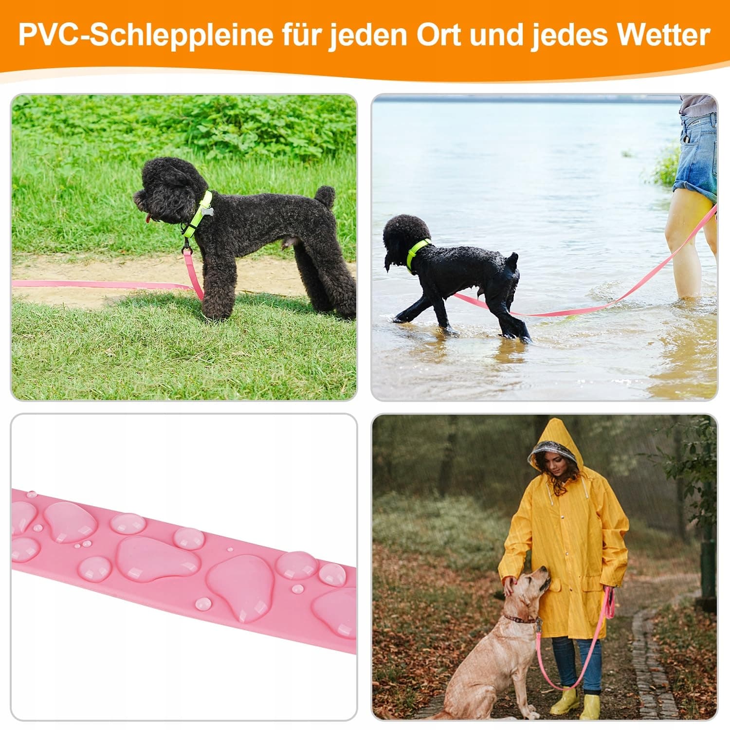 [Wytrzymała i wodoodporna smycz treningowa 20M dla psów]Wewnętrzna warstwa smyczy składa się z poliestru, a zewnętrzna warstwa z wodoodpornego PVC. Ta konstrukcja zapewnia, że smycz jest bardzo odporna na rozdarcia i wodoodporna. Dzięki naszej wodoodpornej smyczy psy mogą swobodnie bawić się lub pływać w jeziorach, nad morzem i w bagnach. Ponadto psy mogą swobodnie biegać po śniegu. Smycz treningowa dla psów nie wchłania wody i nie staje się ciężka.