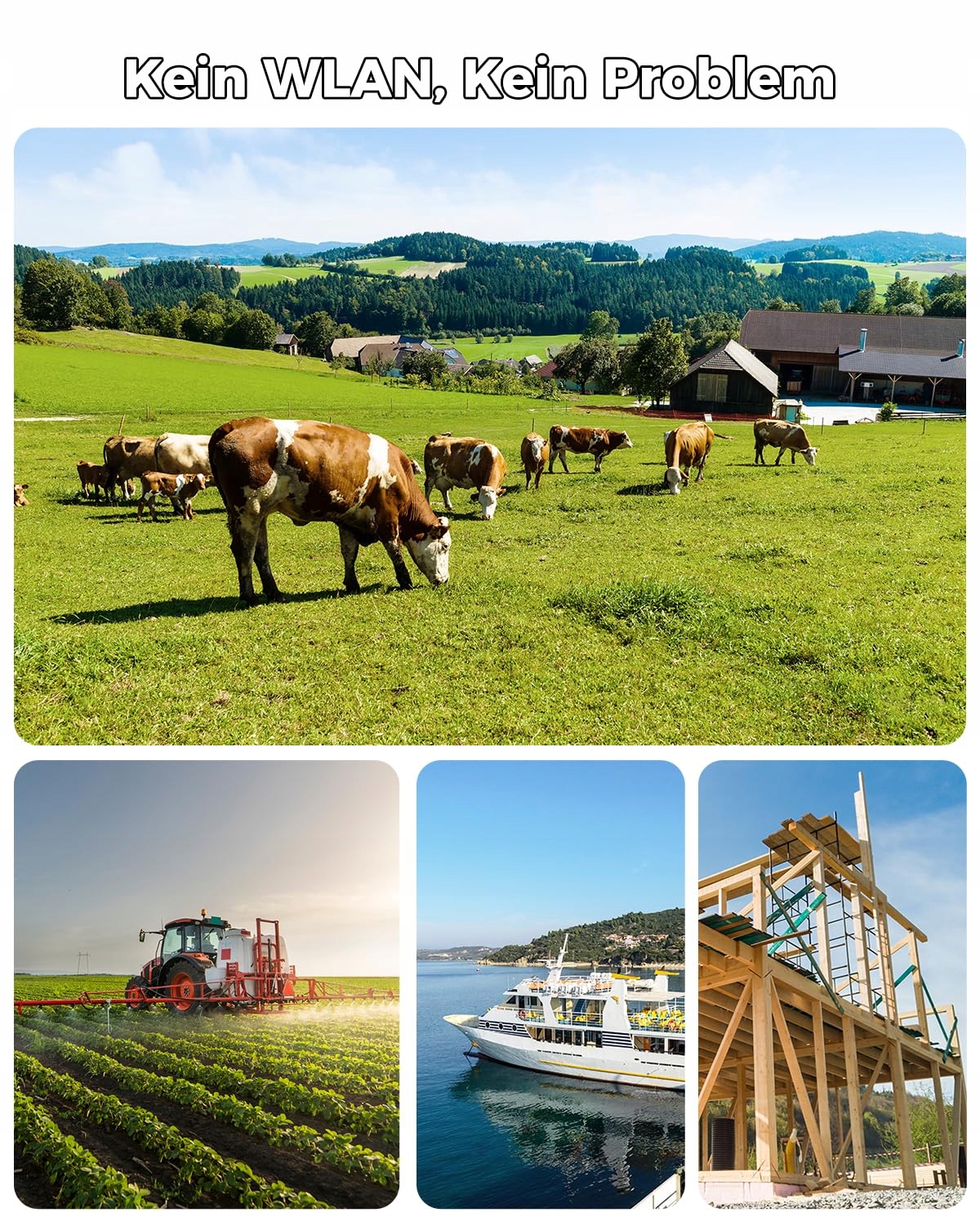 【Kamera monitoringu z kartą SIM】Brak Wi-Fi i zasilania? Żaden problem. Idealna do odległych miejsc (chatki w lesie, place budowy, monitoring zwierząt) oraz obiektów mobilnych (kampery/łodzie). Działa z taryfą danych 4G (obsługuje Telekom, AG, O2, Vodafone, Yess, Alditalk, Tele2, Blau, Ayyildiz, LIDL itp., połączenie Wi-Fi nie jest obsługiwane). W zestawie karta SIM startowa 300MB do natychmiastowej instalacji. Zawsze połączona z tym, co naprawdę ważne.