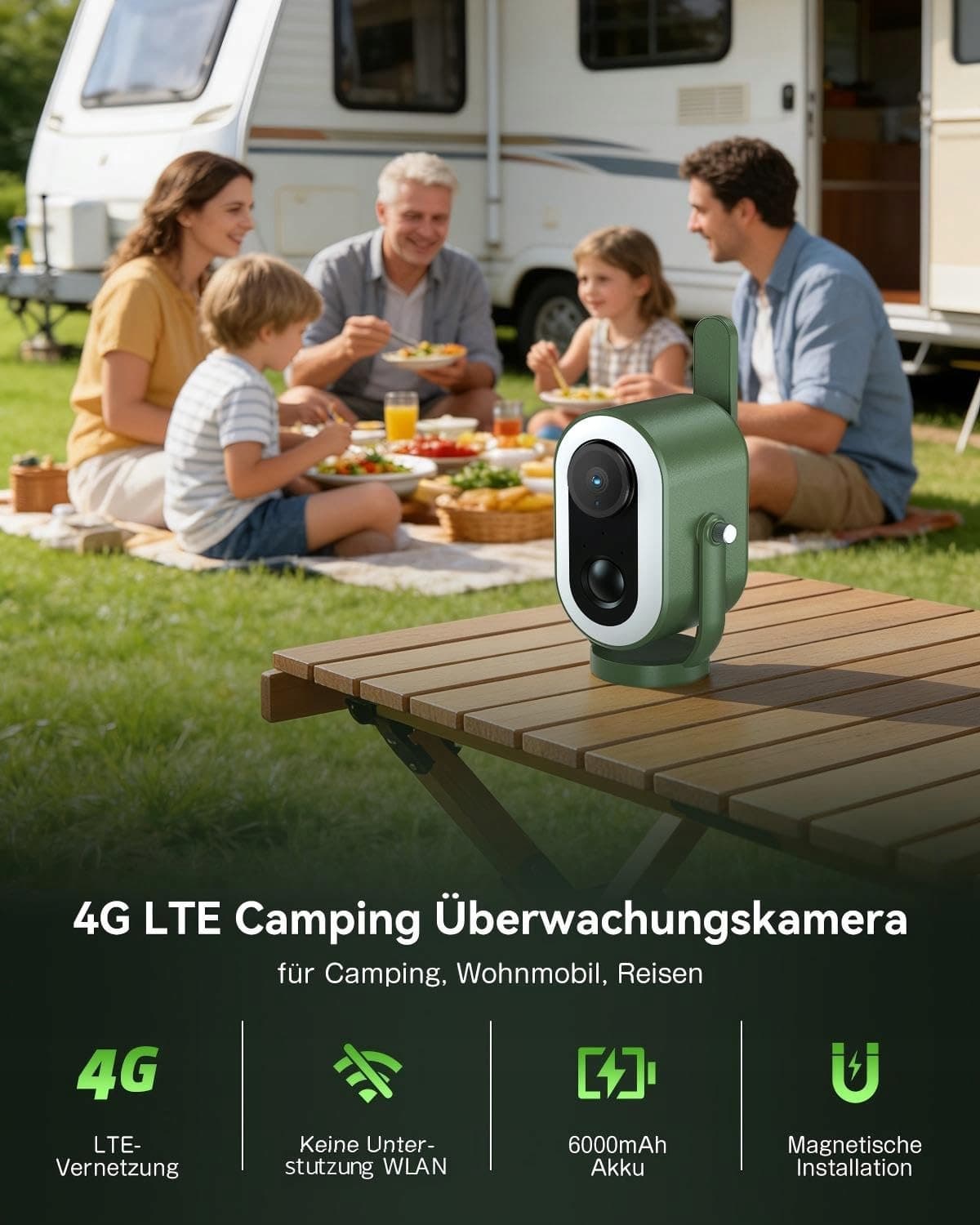 【LEKKA I PRZENOSNA & ELASTYCZNY MONTAŻ】-- Ta kamera monitorująca 4G LTE z kartą SIM na kemping waży tylko 0,27 kg i jest idealna do życia w podróży. Wyposażona w magnetyczną podstawę do łatwego mocowania na powierzchniach metalowych, zawiera również okrągłą naklejkę samoprzylepną do obszarów niemagnetycznych. Alternatywnie można wybrać tradycyjne metody montażu za pomocą wiertarki. Ta kamera bez Wi-Fi jest idealna do mobilnego lub tymczasowego monitoringu takich miejsc jak kampery, pola kempingowe czy miejsca piknikowe itp.
