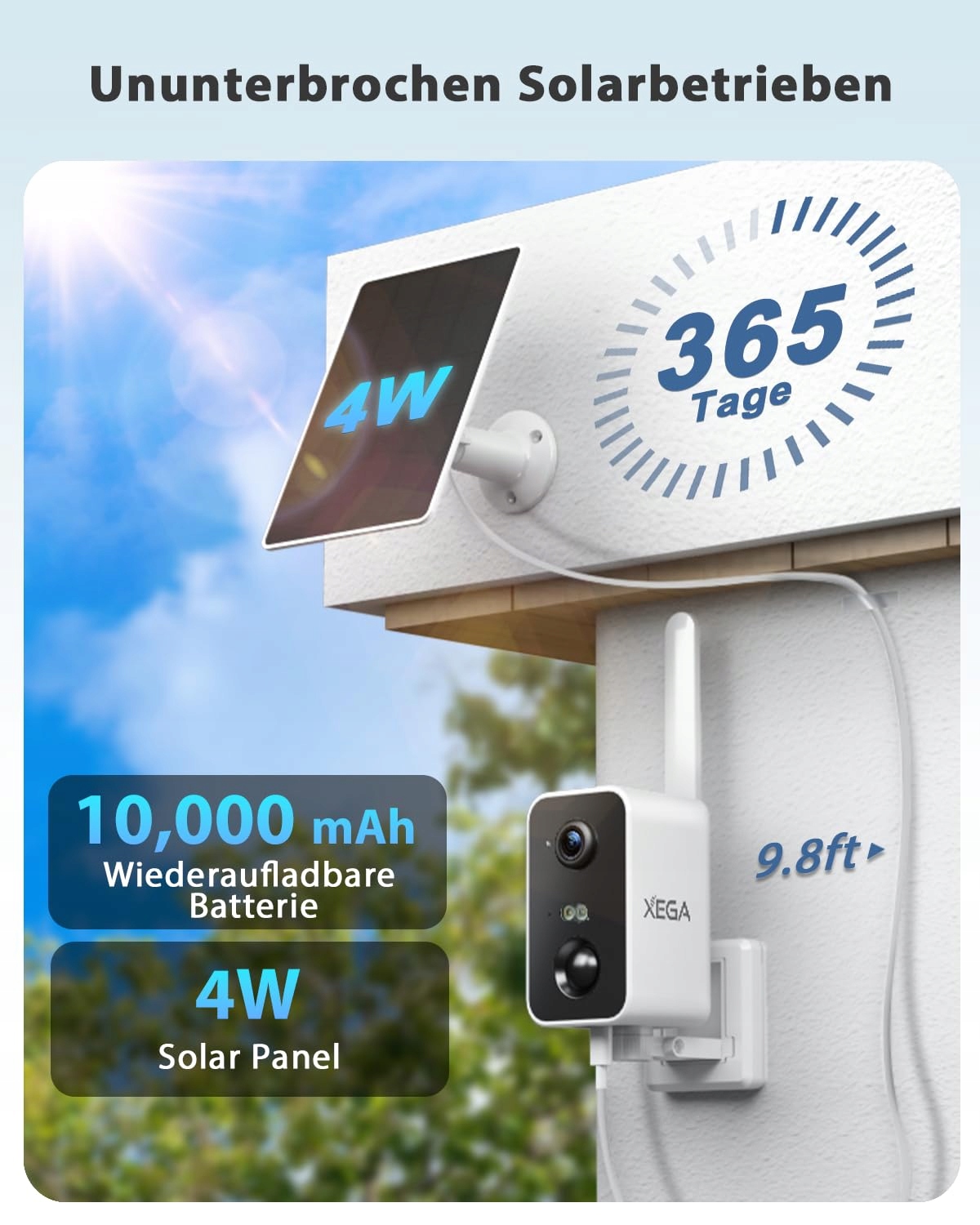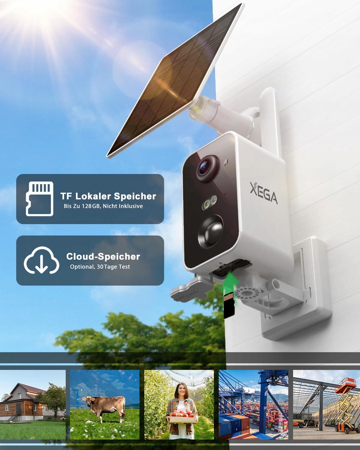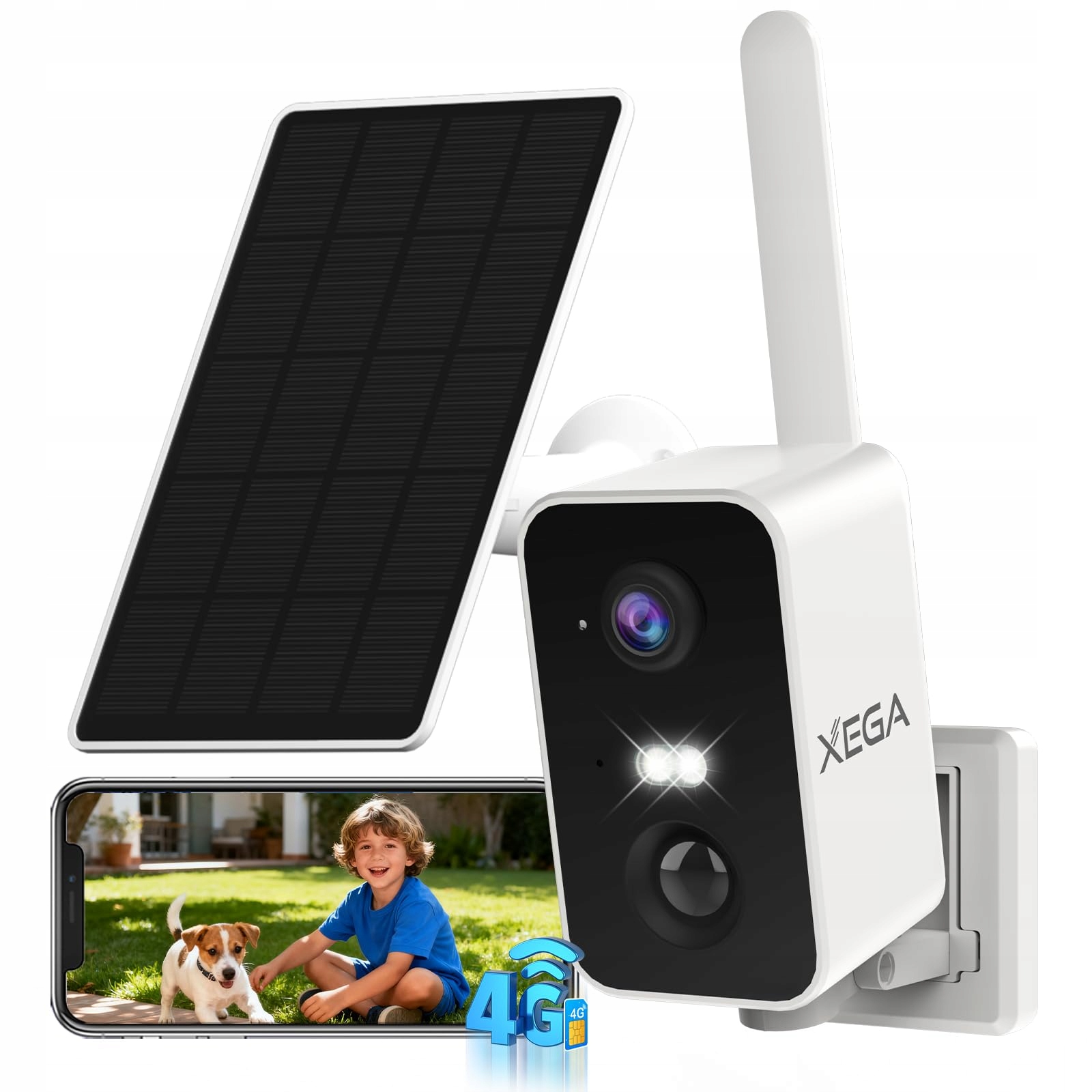 Xega 4G Kamera monitorująca z kartą SIM, zakres obrotu 180°, kamera monitorująca na zewnątrz, akumulator 10000mAh, wykrywanie PIR, kolorowa nocna wizja, dwukierunkowe audio, TF/Cloud, IP66 (bez Wi-Fi)