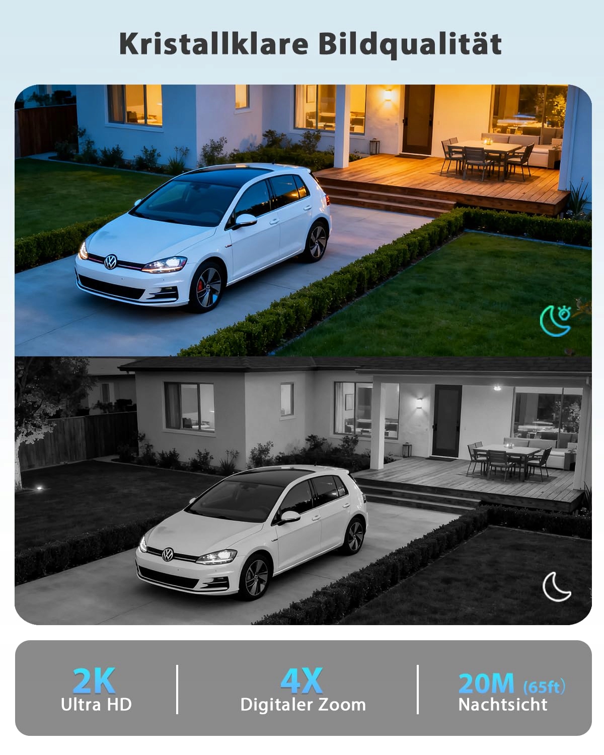 【JAKOŚĆ OBRAZU 2K 3MP W DZIEŃ I NOC】Kamera z kartą SIM oferuje najwyższą jakość obrazu dzięki rozdzielczości 2K Ultra HD, idealną do monitoringu na zewnątrz. Kolorowa nocna wizja zapewnia wyraźniejszy obraz niż tradycyjne czarno-białe nagrania i pomaga lepiej rozpoznać kolory ubrań oraz aktywność ludzi. Zarówno w dzień, jak i w nocy, zewnętrzna kamera monitorująca z kartą SIM zapewnia niezawodną widoczność i chroni Twój majątek z pełnym zaufaniem.