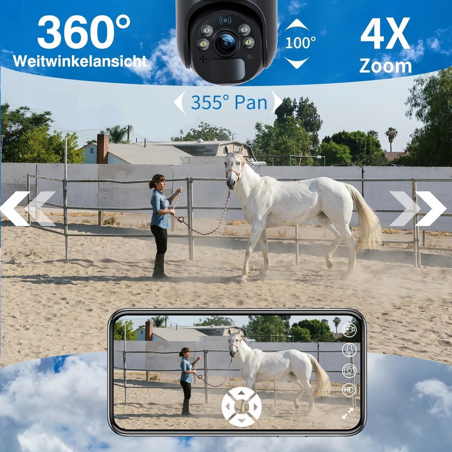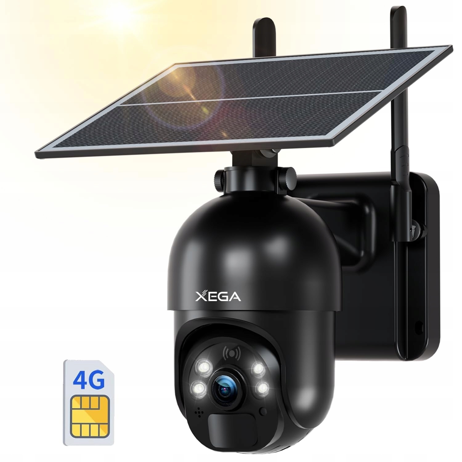 Xega 3G/4G LTE Kamera monitorująca na zewnątrz z kartą SIM Bezprzewodowa Solar PTZ IP Kamera Outdoor z 2K kolorowym trybem nocnym 355°/95° obracana Gniazdo na kartę TF Czujnik PIR Dwukierunkowe audio IP66 wodoodporna