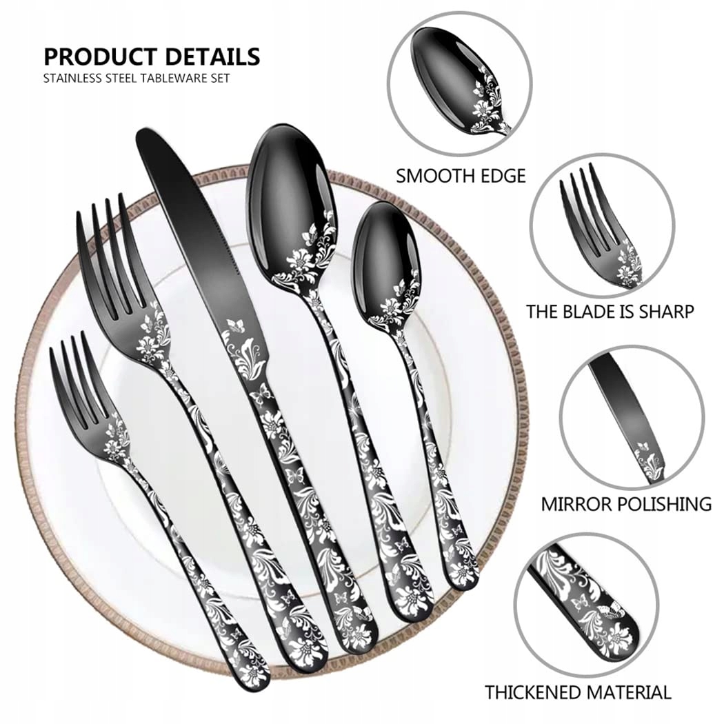 【Unikalny i elegancki design】 Wykwintna laserowa grawerka z motywem kwiatowym, elegancka i smukła rączka, gładka, lustrzana krawędź bez szorstkich miejsc, ostry nóż stołowy do bardziej efektywnego krojenia potraw.