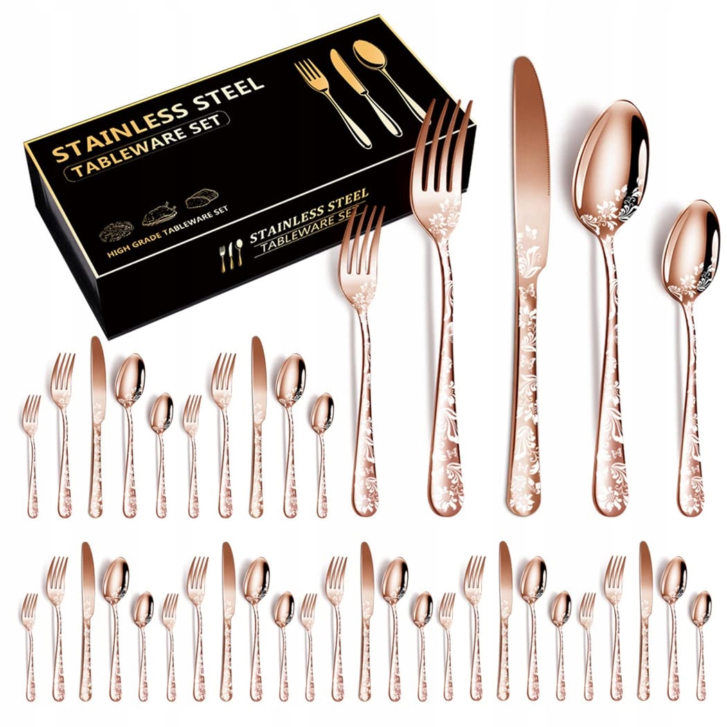 XIAOYU Zestaw Sztućców 40 Elementów Stal Nierdzewna Dla 8 Osób Różowe Złoto | Premium Supply