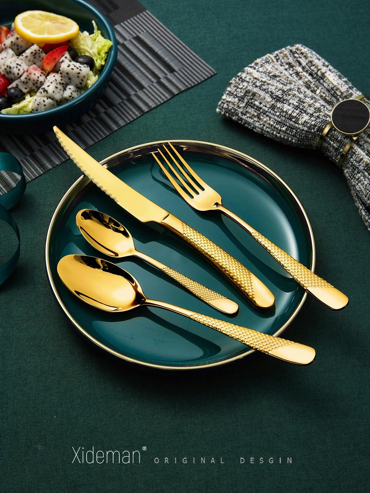 XIDEMAN Zestaw Sztućców 24 Elementy Złote 18/10 Stal Nierdzewna