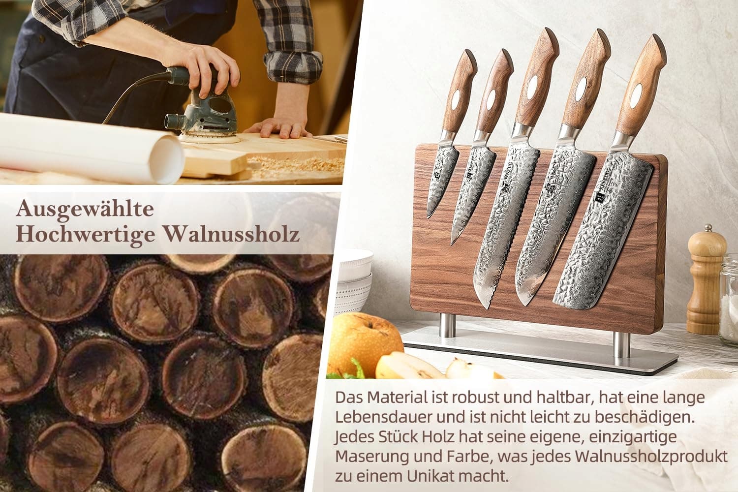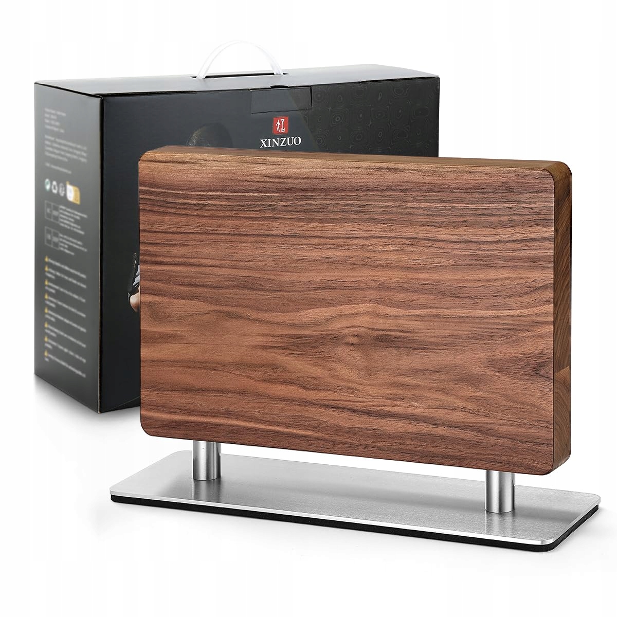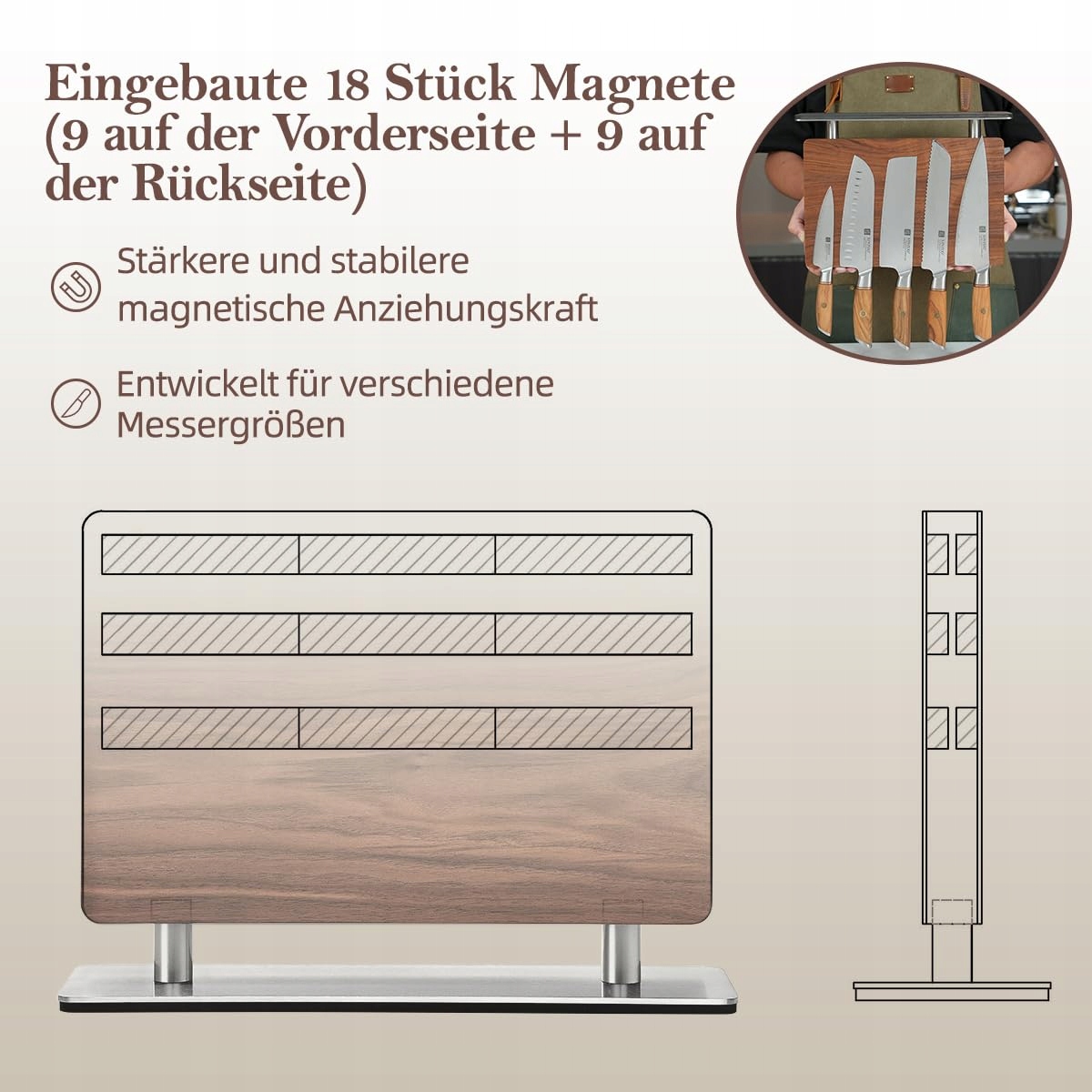 Magnetyczny blok na noże z orzecha włoskiego XINZUO - dostępny obustronnie - magnetyczny uchwyt na noże bez noży - obustronny mocny uchwyt magnetyczny do noży do kuchni - łatwy do czyszczenia - z pudełkiem na prezent