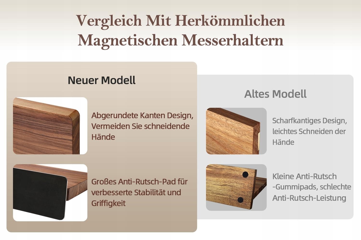 【Chroń swoje noże】Dzięki magnetycznemu uchwytowi na noże twoje noże kuchenne są lepiej chronione, a porządne przechowywanie zmniejsza zużycie ostrzy. Suche i wentylowane przechowywanie ogranicza ryzyko korozji i wydłuża ostrość twoich noży kuchennych.