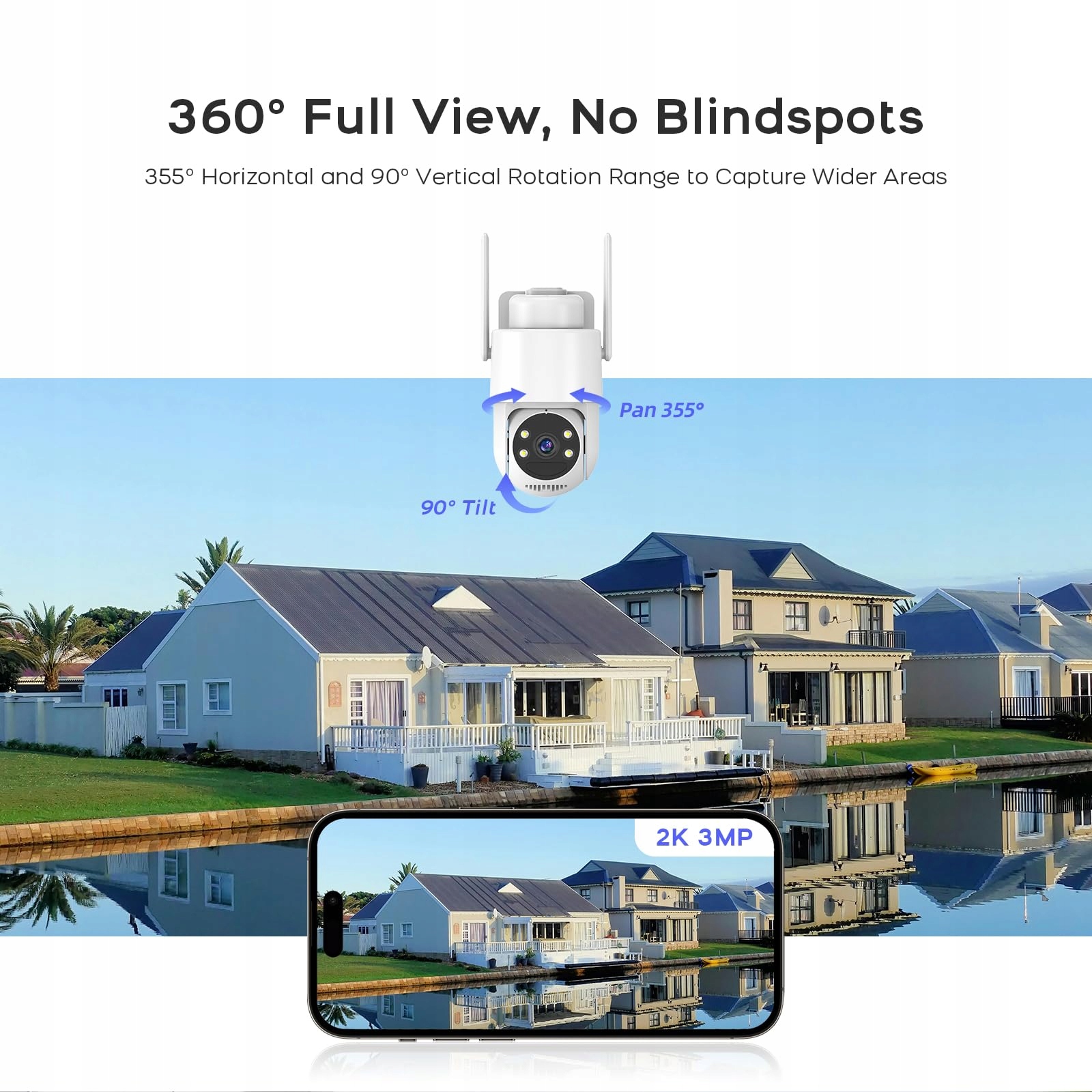[ Funkcja obrotu i pochylenia oraz wykrywanie osób PIR ]: Dzięki funkcji obrotu o 355° i pochylenia o 90° ta bezprzewodowa kamera zewnętrzna zapewnia kompleksową ochronę Twojego otoczenia. Niezależnie czy to weranda, ogród czy podjazd – ciesz się pełnym monitoringiem. Wykrywanie ruchu redukuje fałszywe alarmy.